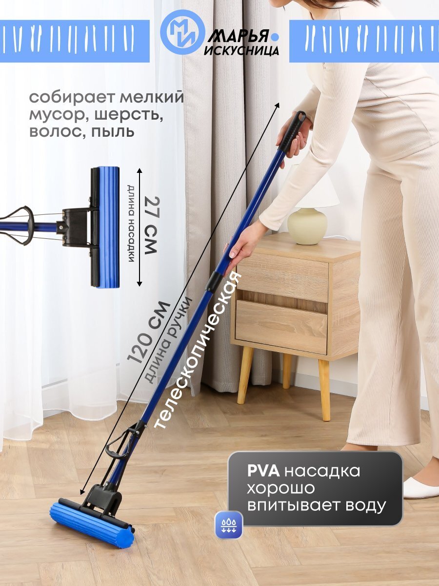 Вы можете приобрести «Швабра МОП губка, ПВА, 120х27 см, синяя, с отжимом, телескопическая ручка, синяя, Марья Искусница, KD-8050A» и другие товары в нашем интернет-магазине в Шахтах по низким ценам и с бесплатным самовывозом.