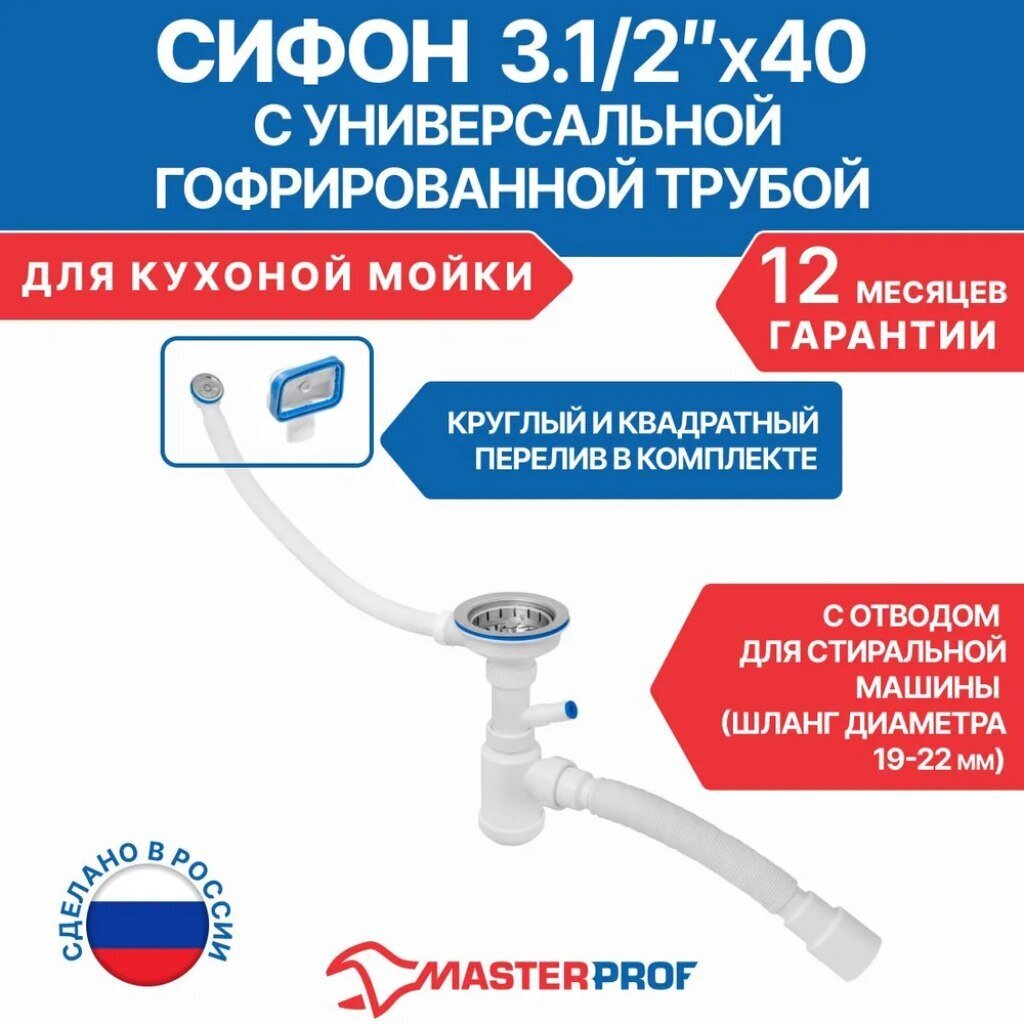 Правильно подобранный сифон обеспечивает отличный слив и помогает избежать частого засорения канализации. Модель MasterProf ИС.110637 с отводом для бытовой техники устанавливается на кухонные мойки со сливным отверстием 90-94 мм. Подходит для моек с максимальной глубиной сливного отверстия 30 мм.