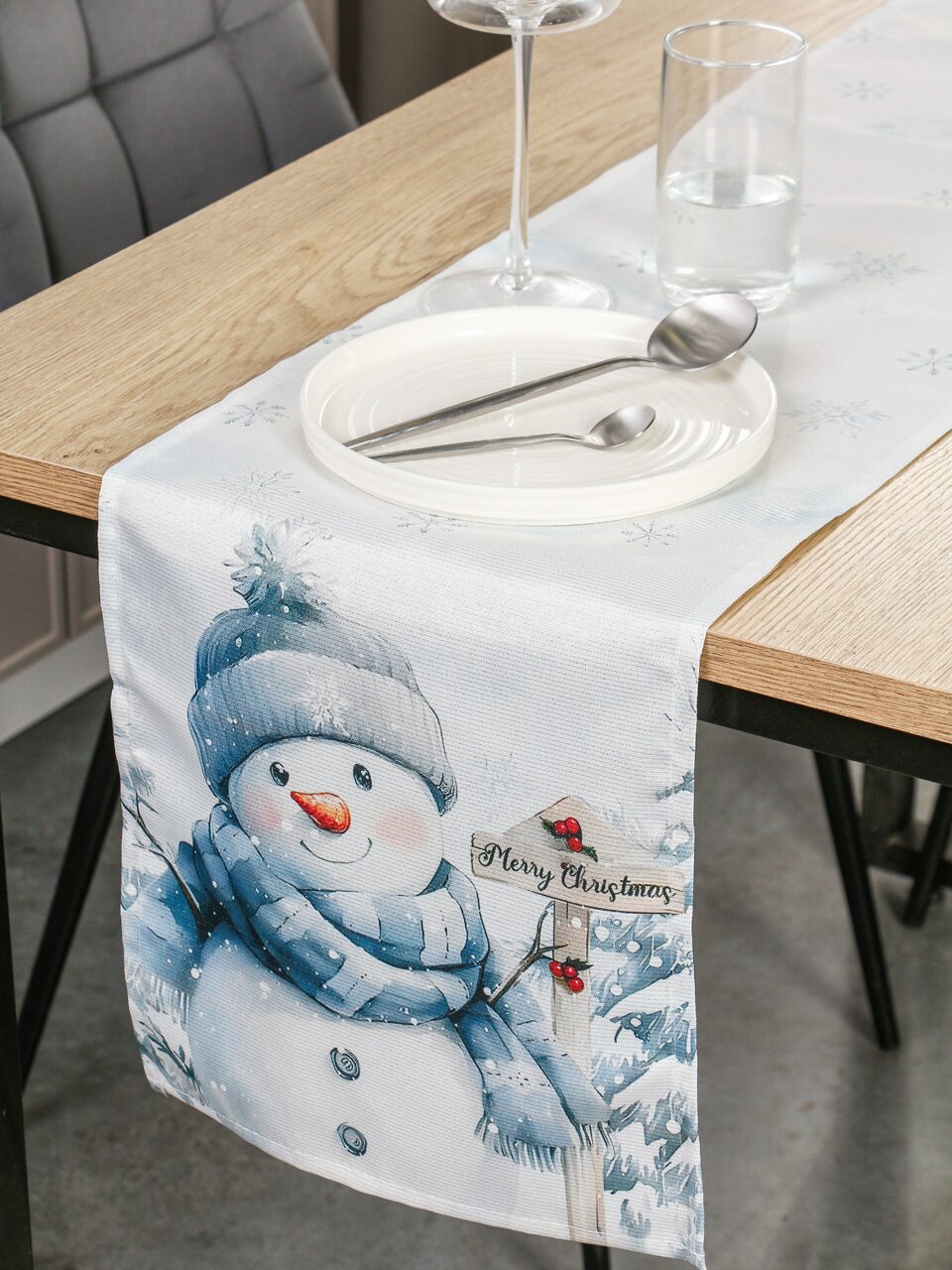 Декоративная дорожка для стола 30х180 см «Снеговик» — создайте атмосферу Нового года и уюта легко, быстро и без лишних затрат.