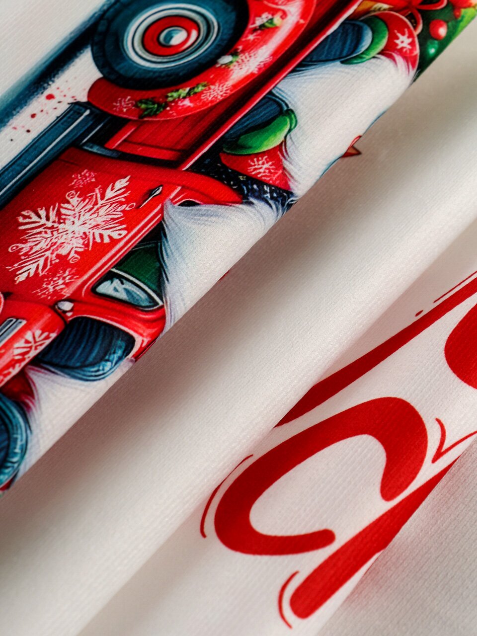 Главное отличие — эксклюзивный новогодний дизайн «Гномики на машине», универсальный размер 30х180 см и износостойкая ткань, не требующая сложного ухода.