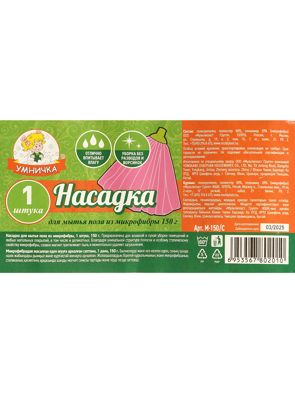 Сменный блок для швабры микрофибра круглый розовый Умничка Юбка M-150/C — чистота без усилий: долговечная насадка для быстрой уборки дома и дачи.