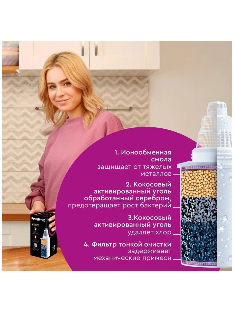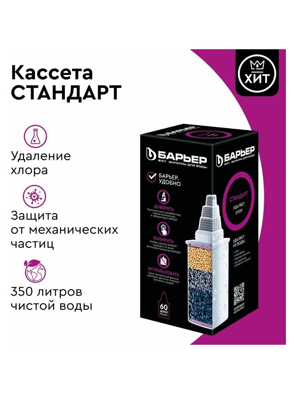 Кассета «Стандарт» для фильтра-кувшина с рабочим ресурсом до 350 литров разработана специально для очистки воды от органических и неорганических примесей, в том числе имеющих вид мельчайших частиц. Дополнительно кассета удаляет ионы тяжелых металлов.