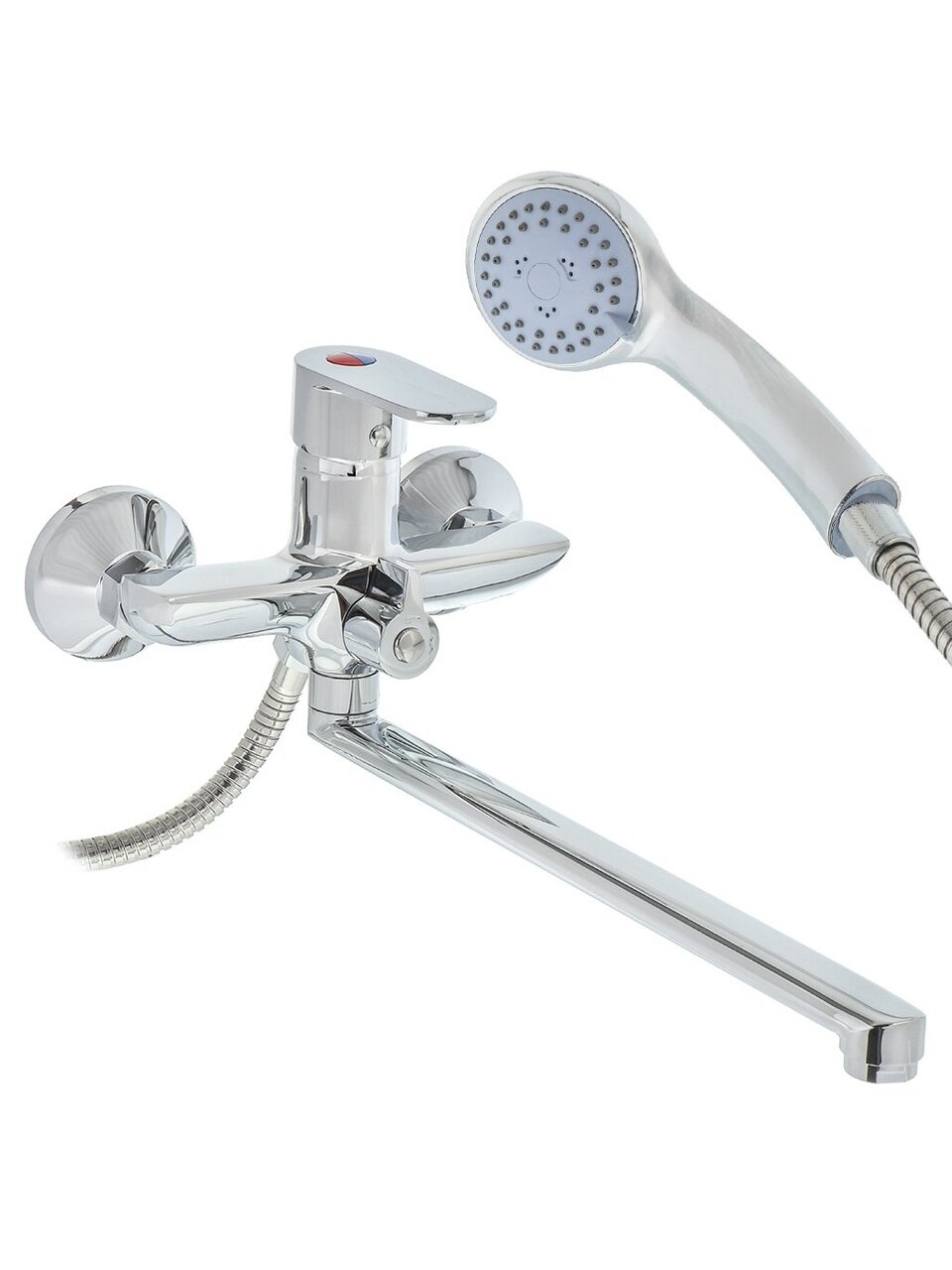 Излив длиной 35 см позволяет удобно мыть ванну, набирать воду в ведро или пользоваться душем без брызг. Это особенно удобно для семей и дачных санузлов.