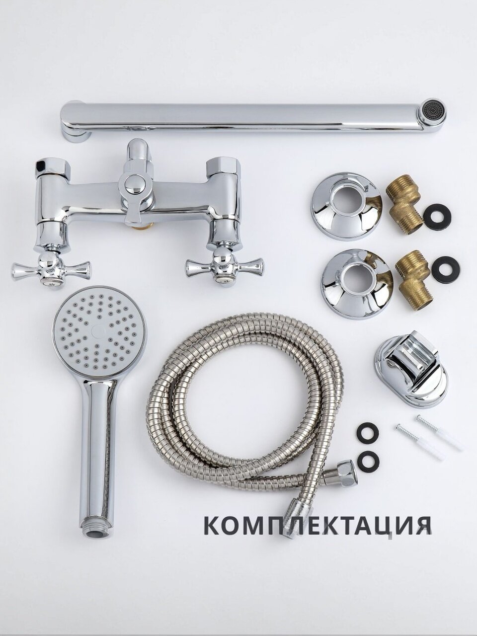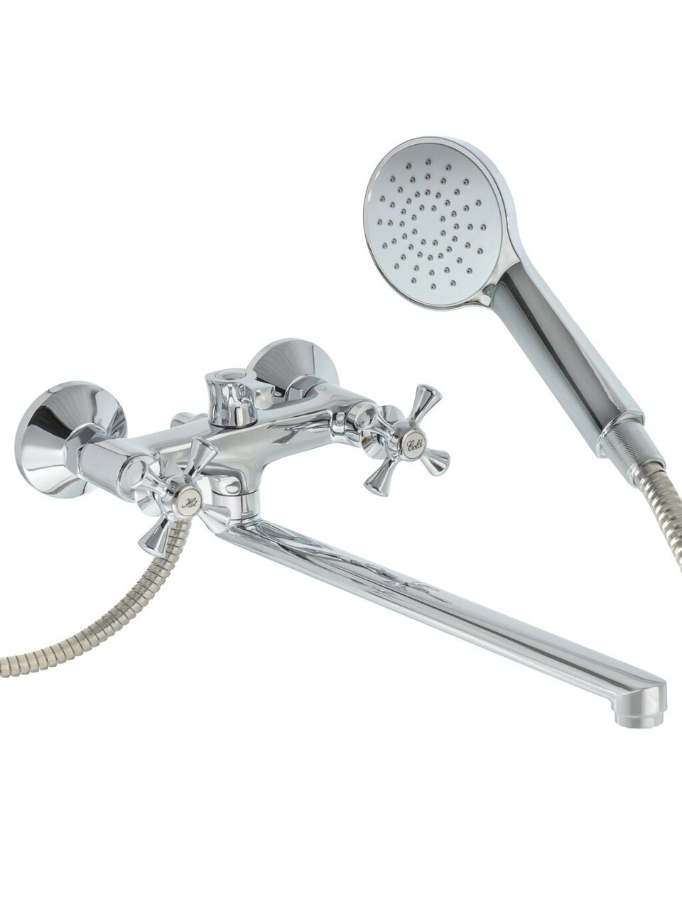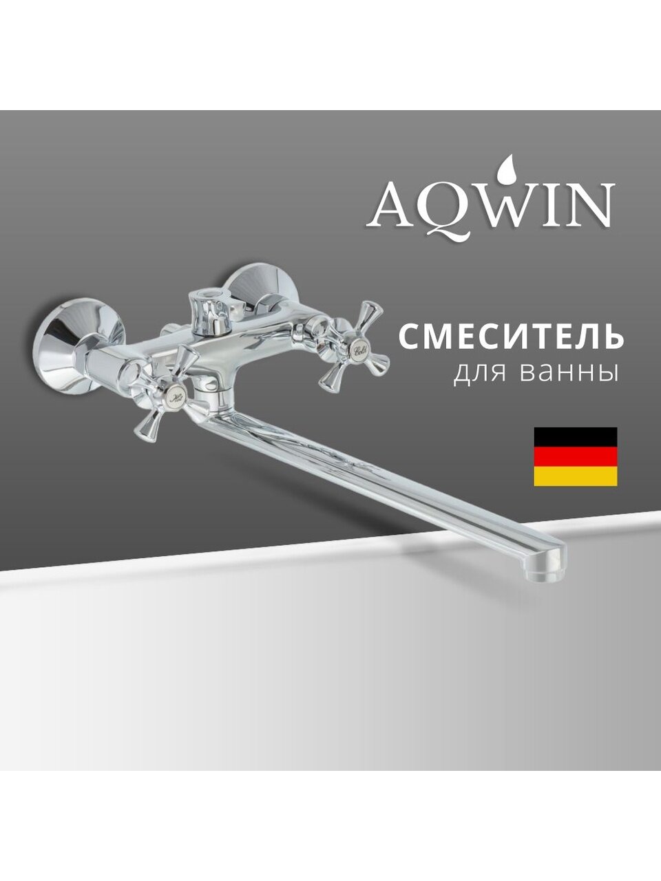 Смеситель для ванны Aqwin A2364 — долговечное решение для ванной: керамическая кран-букса, длинный поворотный излив 35 см, лейка и гибкий шланг.