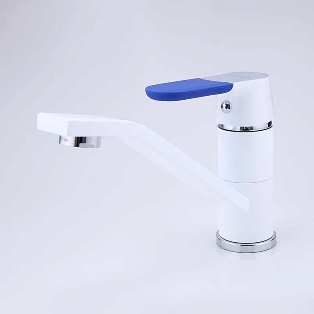 - Современный дизайн и практичность: белый глянцевый корпус из латуни с поворотным изливом для максимального удобства