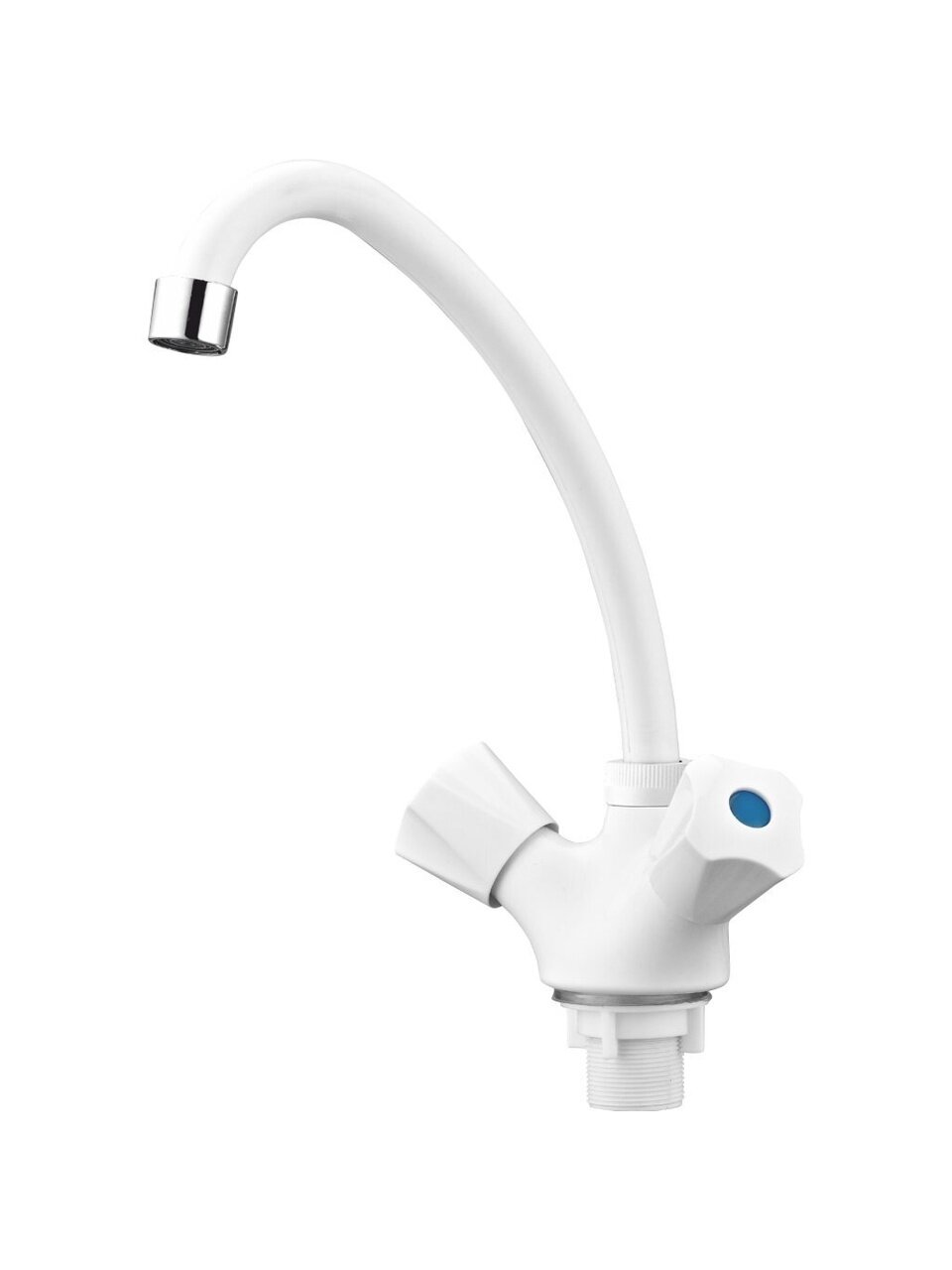 Смеситель для кухни РМС PL4-271F — это практичный выбор для тех, кто ищет недорогой, но надёжный вариант с двумя вентилями и поворотным изливом. Благодаря ABS-пластику корпус не ржавеет, не темнеет и сохраняет белоснежный вид даже при интенсивном использовании. Такой смеситель особенно популярен для установки на дачу, в арендное жильё или как временное решение на кухне.