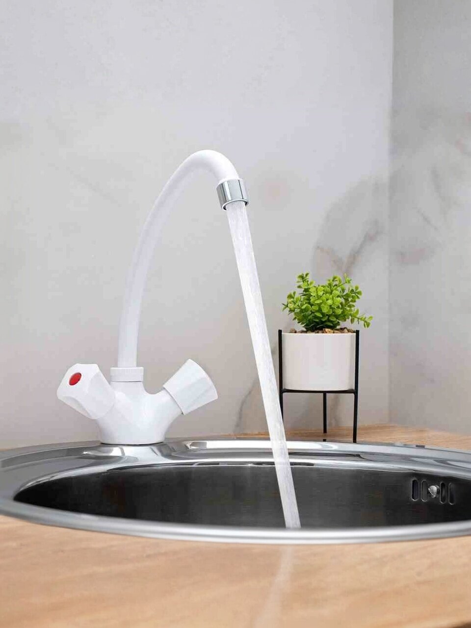 Если вы ищете, какой смеситель выбрать для кухни недорого, обратите внимание на двухвентильную конструкцию: она надёжна и удобна для регулировки температуры. PL4-271F не оснащён фильтром или водонагревателем, зато идеально подходит для стандартных кухонных задач. Его универсальный белый цвет гармонирует с любой мебелью, а глянцевая поверхность легко очищается от загрязнений.