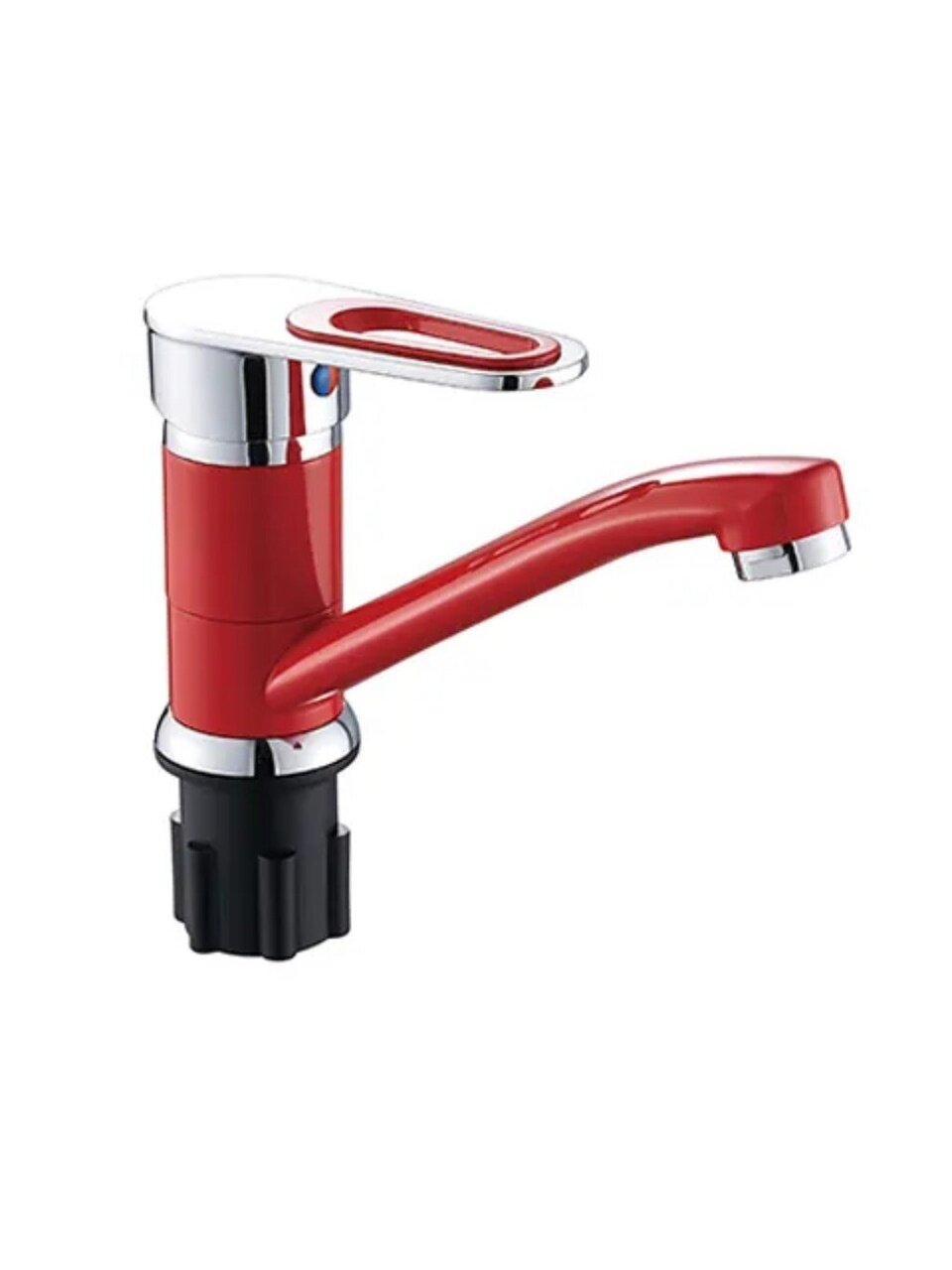 Смеситель для раковины Эверест B45-274C — стильный акцент в ванной: надежный цинковый сплав, глянцевый красный, плавный поворот, монтаж за 10 минут.
