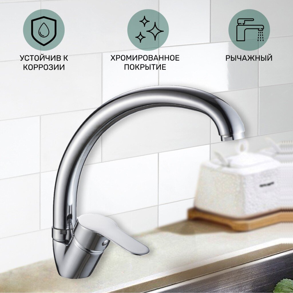 Смеситель для кухни Gota Rocio Leone: латунь, хром, высокий поворотный излив 19,2 см — удобство и стиль для современной кухни по выгодной цене