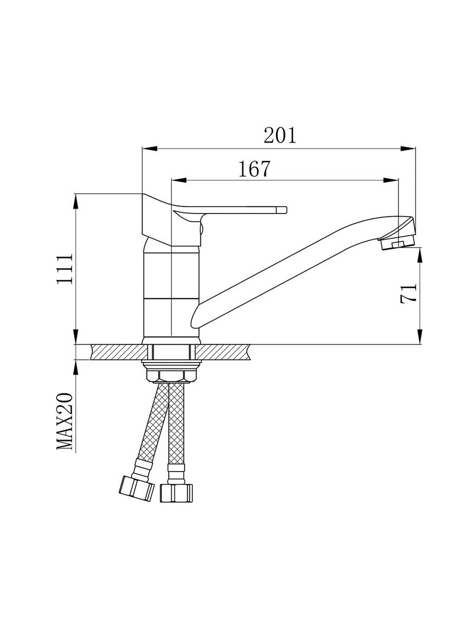 Поворотный средний излив (16,7 см), эргономичный рычаг, керамический картридж и гибкая подводка делают модель удобной для мытья посуды, наполнения кастрюль и быстрой регулировки температуры.