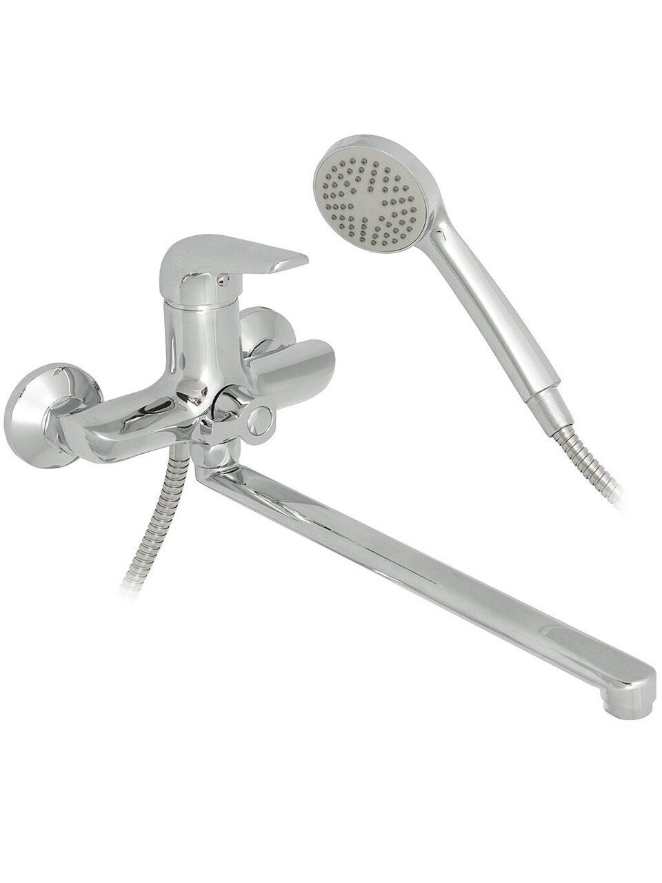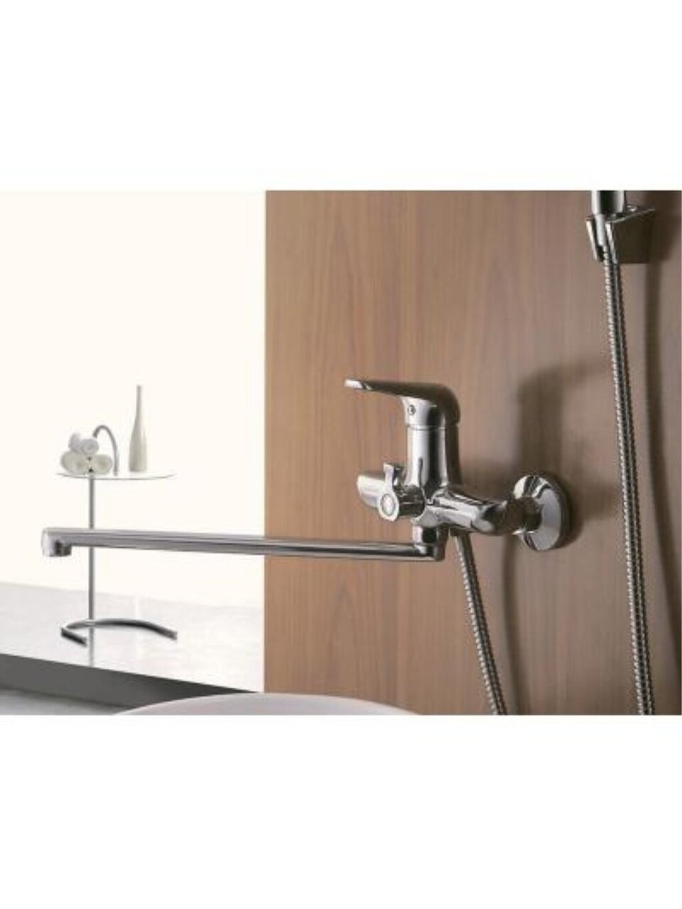 - Удобство: длинный поворотный излив 35 см и межосевое расстояние 150 мм подходят для стандартных ванн и душа