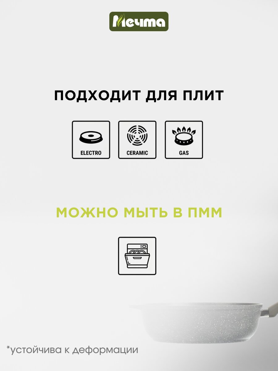 Откройте для себя идеального помощника на кухне — сотейник алюминий 28 см с антипригарным покрытием от бренда "Мечта", модель "Гранит". Этот стильный и функциональный кухонный аксессуар станет незаменимым инструментом для приготовления вкусных и полезных блюд. Сотейник выполнен из высококачественного литого алюминия, что обеспечивает равномерное распределение тепла и долговечность использования. Антипригарное покрытие на водной основе Greblon гарантирует отсутствие перфтороктановой кислоты (PFOA), что делает приготовление пищи безопасным и экологичным.