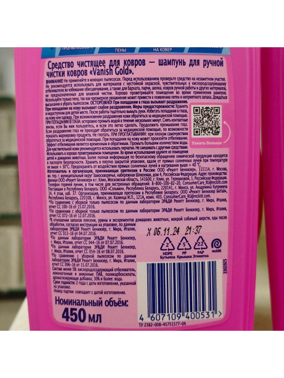 Вы можете приобрести «Чистящее средство Vanish, Gold 3в1, для чистки ковров, 450 мл» и другие товары в нашем интернет-магазине в Курске по низким ценам и с бесплатным самовывозом.