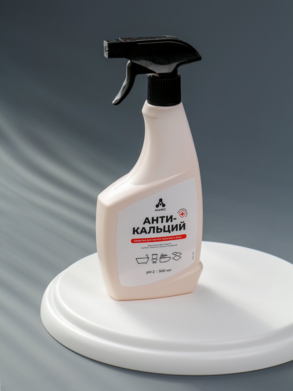 Быстрое удаление известкового налёта: спрей «Антикальций» Альянс для ванной и туалета — чистота без усилий, экономия времени и денег.