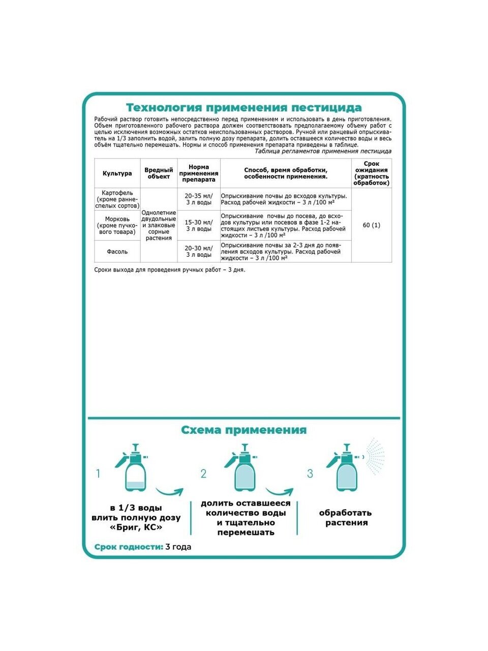 - Удобство использования: Жидкая форма выпуска и опрыскивание позволяют легко наносить средство на картофель, фасоль, морковь, кукурузу и подсолнечник.