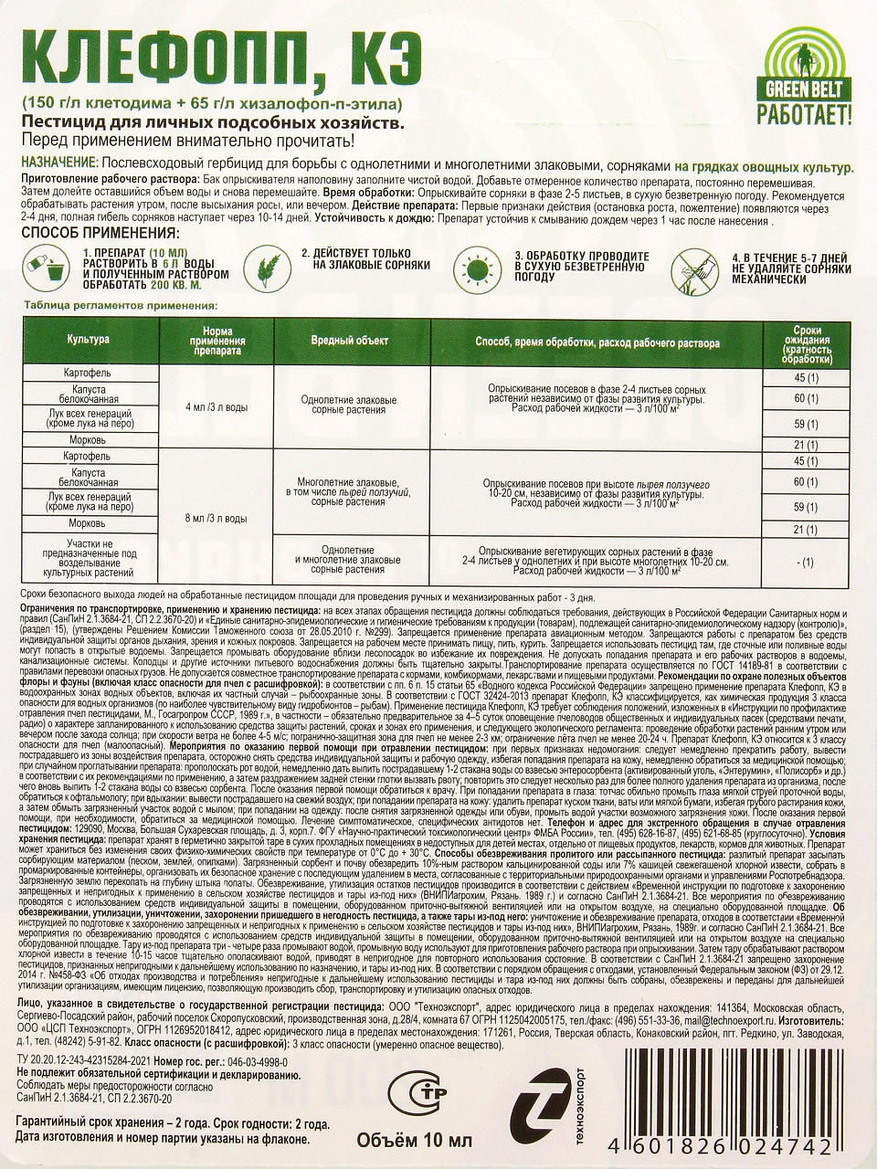 Гербицид Клефопп, 10 мл, КЭ, от сорняков для овощ. Культур, флакон, Green Belt