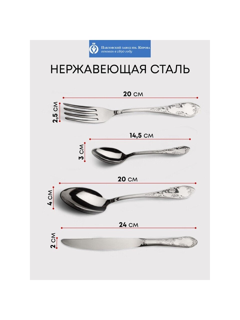 Набор столовых приборов из нержавеющей стали на 6 персон: Павловский завод им. Кирова, Посольская М-18 — долговечность, элегантность и универсальность для вашего стола.