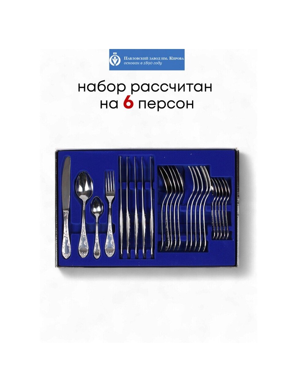 Вы можете приобрести «Набор столовых приборов нержавеющая сталь, 24 предмета, Павловский завод им. Кирова, Посольская М-18, СН-24М18ЦМГ» и другие товары в нашем интернет-магазине в Липецке по низким ценам и с бесплатным самовывозом.
