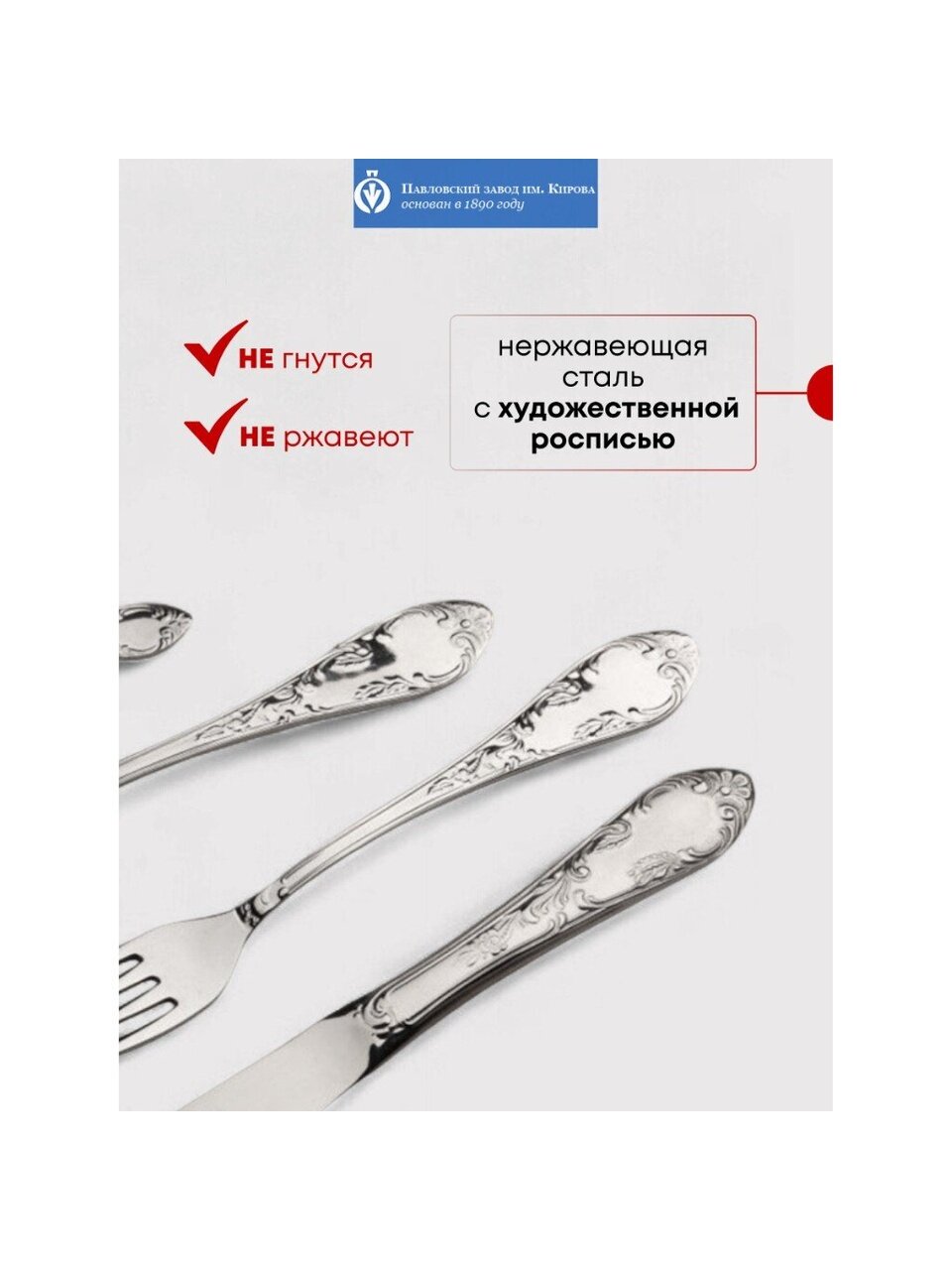 Набор столовых приборов из нержавеющей стали «Посольская М-18» от Павловского завода им. Кирова — это сочетание традиционного качества и современного подхода к сервировке. Благодаря фигурным металлическим ручкам с художественной росписью, каждый предмет смотрится статусно и подчеркивает стиль сервировки. Часто спрашивают: «Какой набор столовых приборов выбрать для подарка?» — этот комплект оптимален по цене и эстетике, подходит для семейного ужина и праздничного стола.