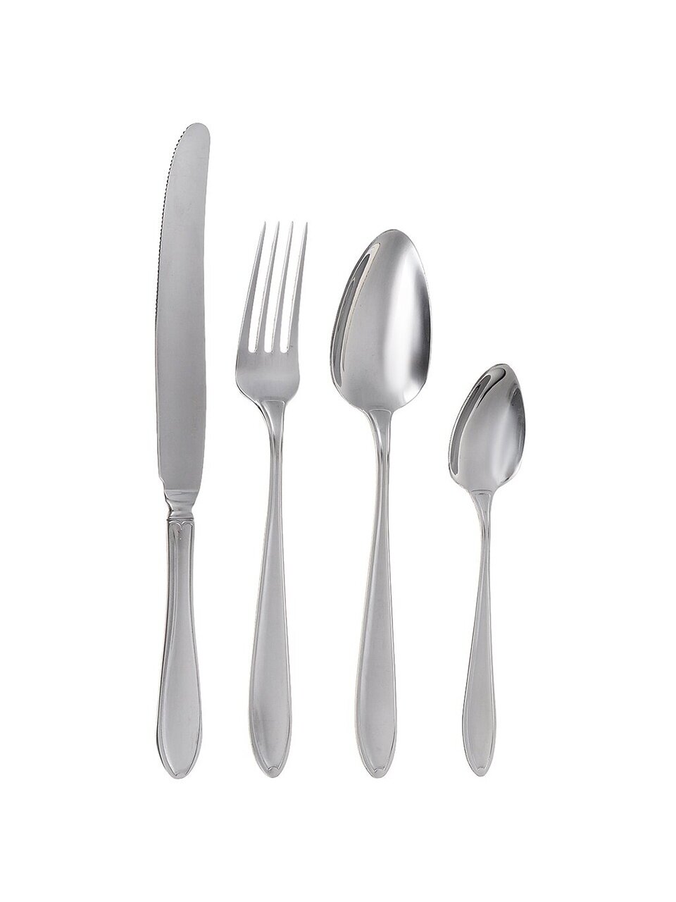 В комплекте 24 предмета: по 6 столовых ложек, вилок, ножей и чайных ложек, рассчитано на 6 персон.