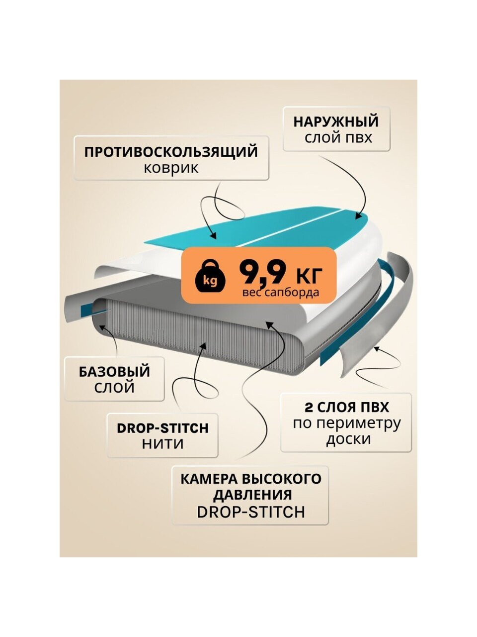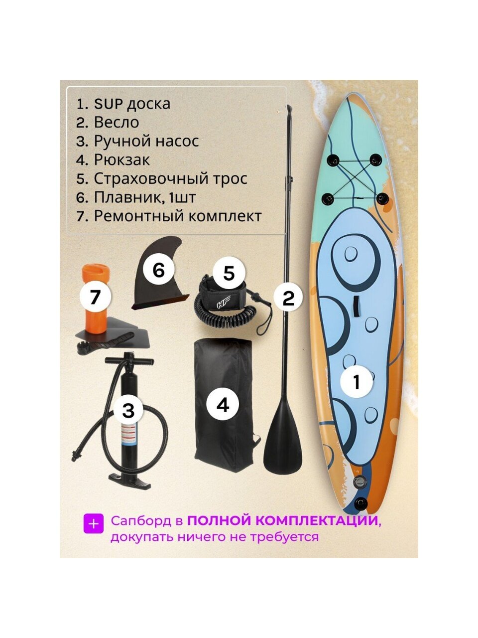 Сап борд оснащен всем необходимым для комфортного и безопасного катания. В комплекте идет насос для быстрой накачки, раздвижное весло, которое легко подстраивается под ваш рост, и лиш, обеспечивающий безопасность на воде. Рюкзак позволяет удобно переносить и хранить борд, а ремкомплект поможет быстро устранить мелкие повреждения.