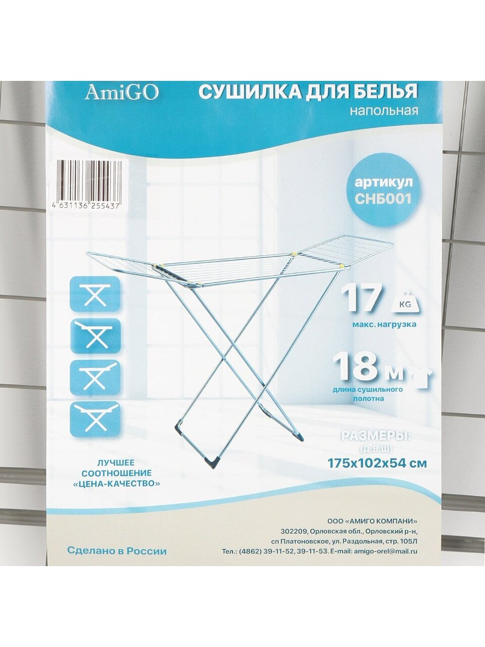 Вы можете приобрести «Сушилка для белья напольная, полотно 18 м, складная, 18 прутьев, 15 кг, стальная, Comfort, СНБ001» и другие товары в нашем интернет-магазине в Белгороде по низким ценам и с бесплатным самовывозом.