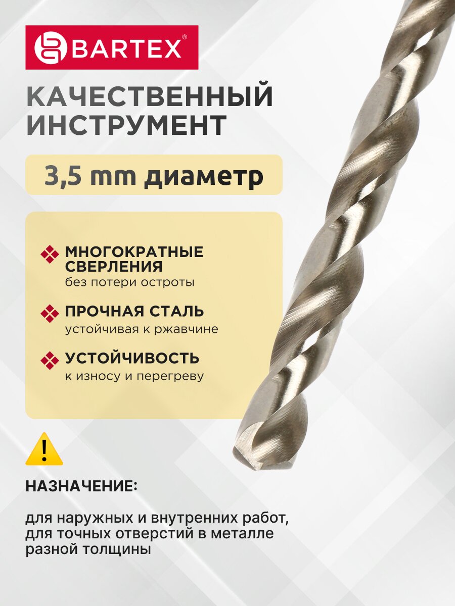Сверло по металлу Bartex HSSM2 3.5 мм — надежный инструмент для точного сверления металла, выгодный набор 10 штук для домашнего и профессионального использования.