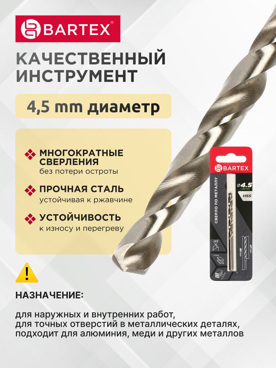 Сверло по металлу Bartex HSSM2 4,5 мм: точное сверление, долговечность, оптимально для ремонта и мастерской. Закажите с быстрой доставкой!