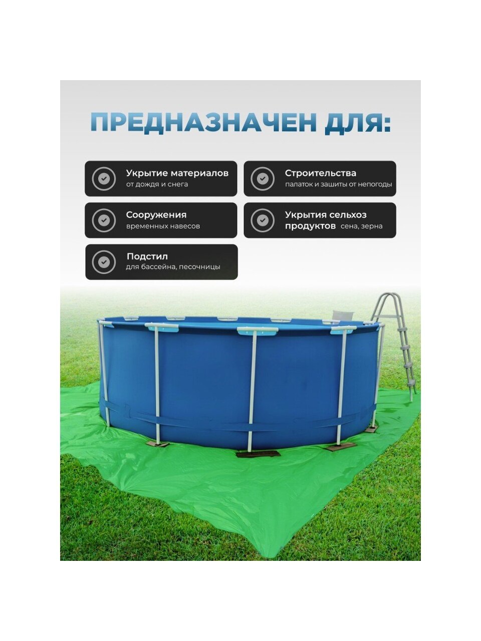 Тент универсальный 500х300 см — идеальное решение для защиты от дождя, солнца и града. Прочный прямоугольный тент из полиэтилена зеленого цвета подходит для использования в самых разных сферах: на даче, в саду, на стройке, в туристических походах и хозяйственных нуждах. Благодаря универсальному назначению, изделие легко станет надежным помощником для создания навеса, укрытия инвентаря, автомобиля, стройматериалов или урожая. Удобство и долговечность обеспечивают алюминиевые люверсы, расположенные по краю полотна через каждый метр — крепление становится быстрым и надежным, а материал не рвется даже при сильном натяжении.