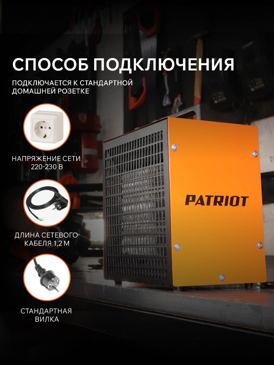 Электрическая тепловая пушка Patriot PT Q 5S — быстрый обогрев до 35 м², керамический элемент, 2 режима, надёжно и безопасно для дома и дачи.