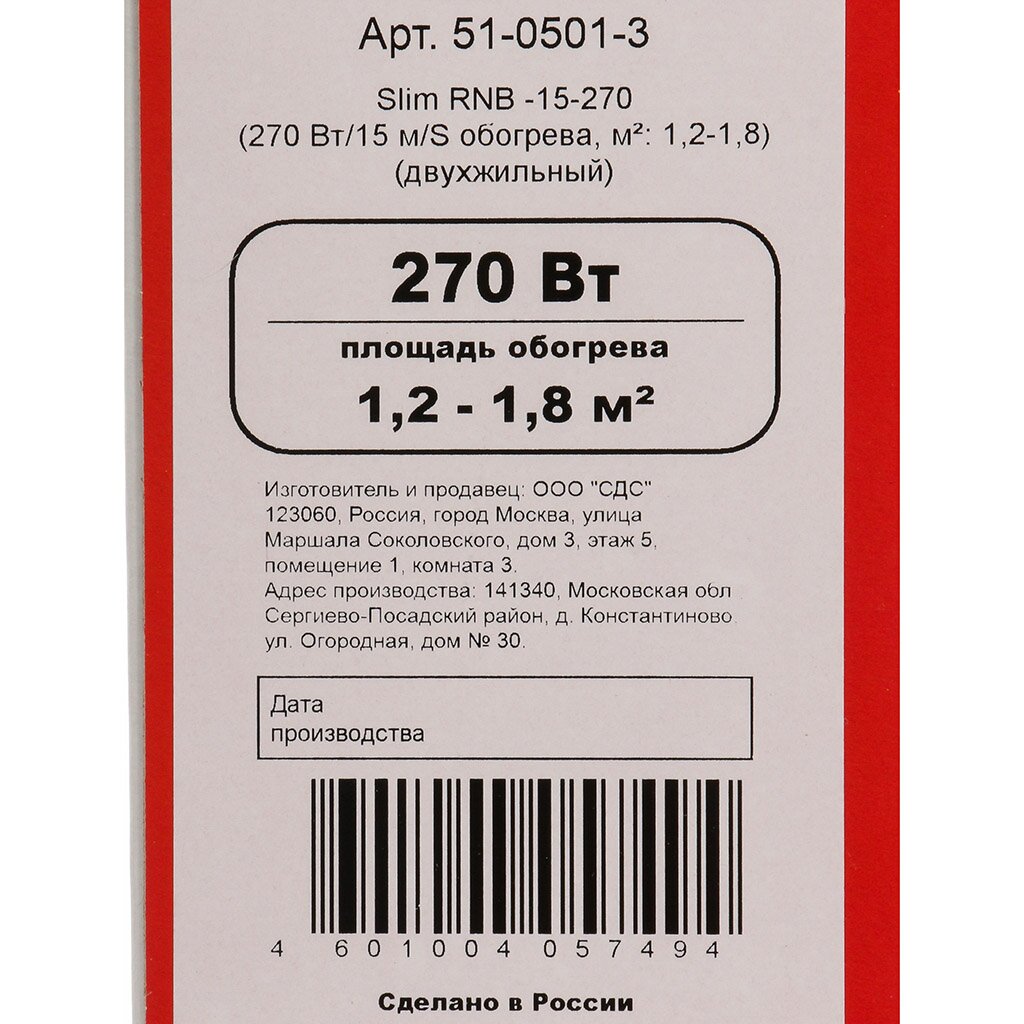Теплый пол 1.2-1.8 м2, 2700 Вт, двухжильный, 15 м, Slim RNB-15-270, Rexant