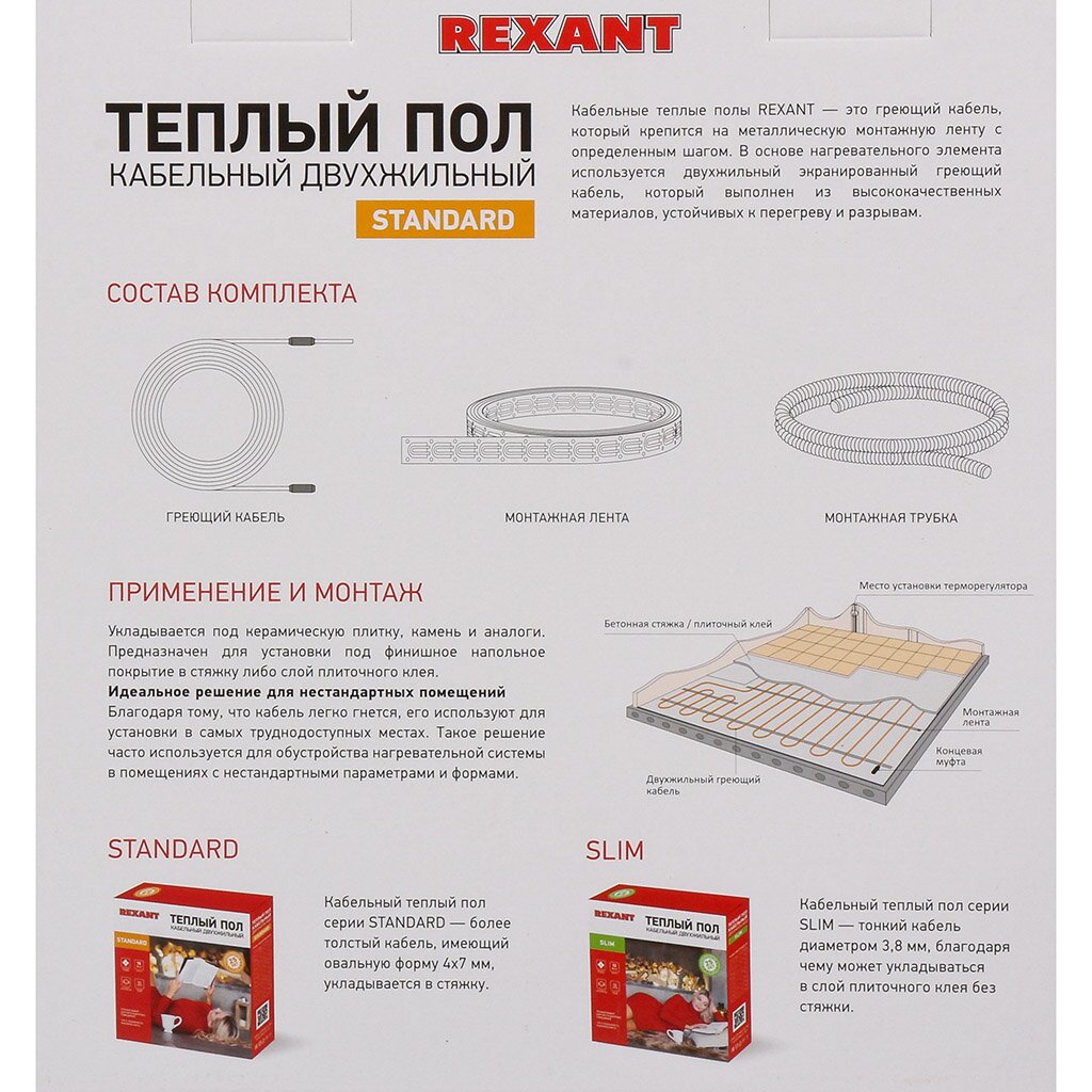 Тёплый пол Rexant Standard RND-40-600: эффективный обогрев 3.7–5.0 м², двухжильный кабель 40 м, надёжность IP67 — комфорт и экономия под любым покрытием.