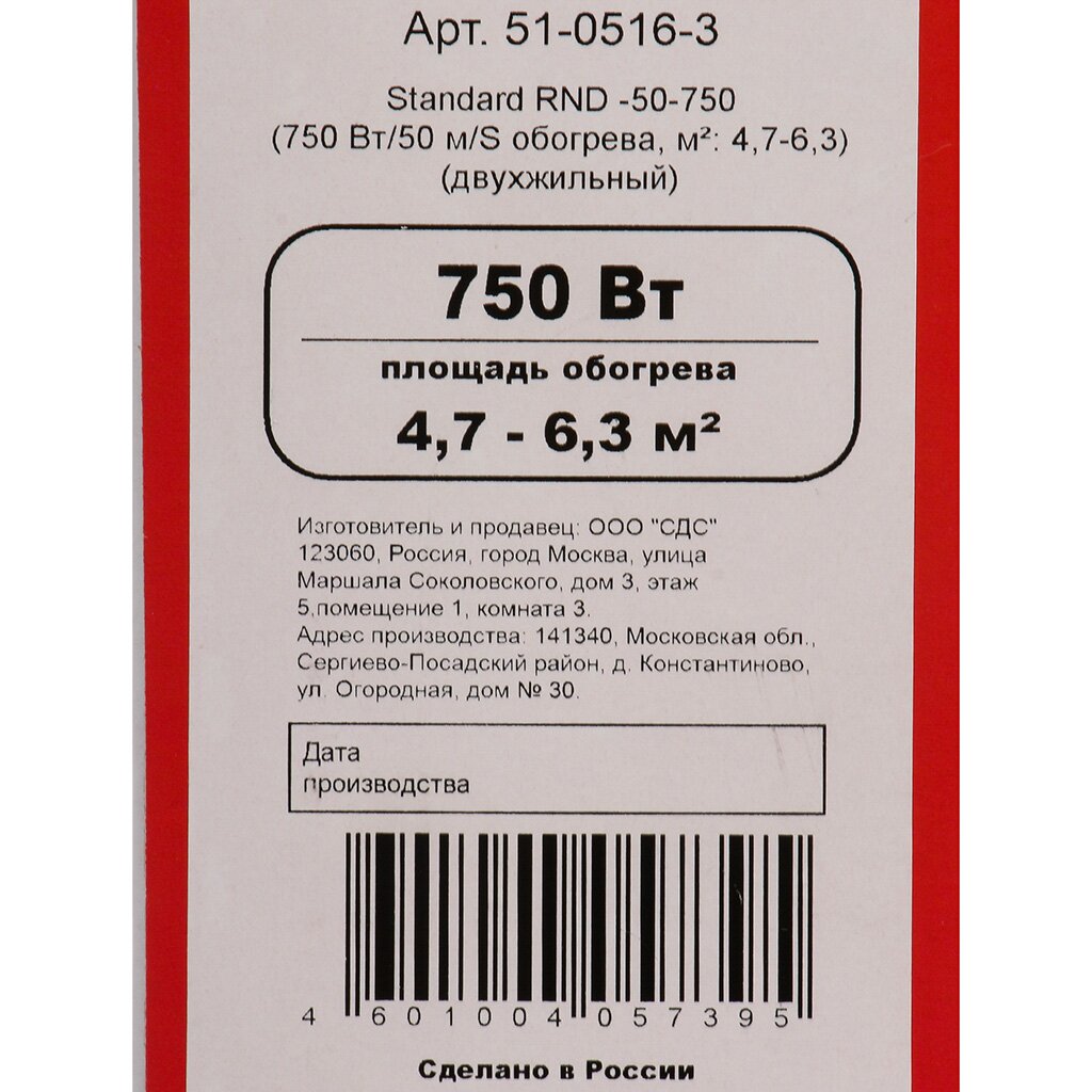 Тёплый пол Rexant Standard RND-50-750: энергоэффективный обогрев 4.7–6.3 м², монтаж за 1 день, надёжная защита IP67 — комфортный дом без лишних затрат.