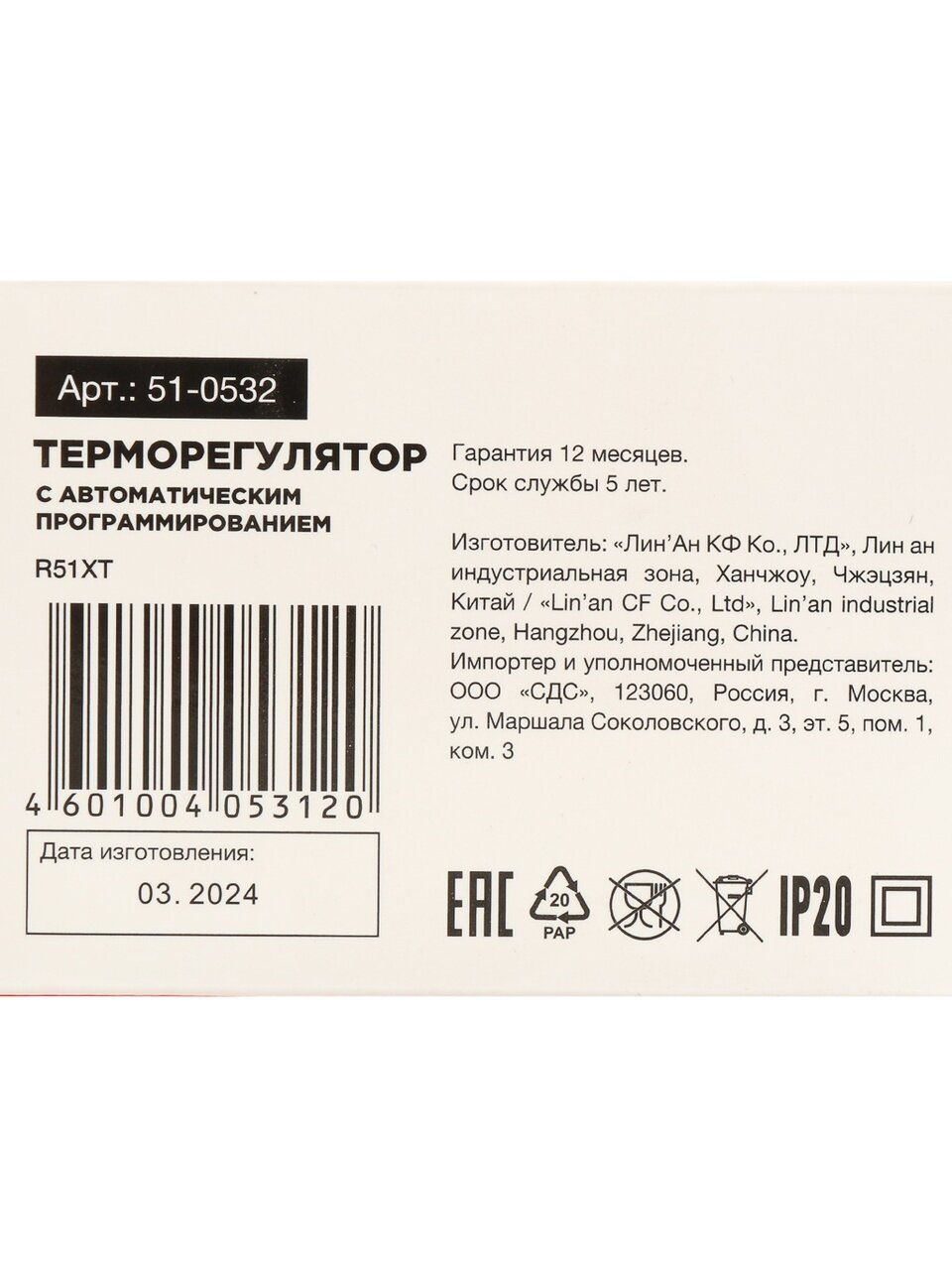 Вы можете приобрести «Терморегулятор цифровой программируемый, белый, R51XT, Rexant» и другие товары в нашем интернет-магазине в Борисоглебске по низким ценам и с бесплатным самовывозом.