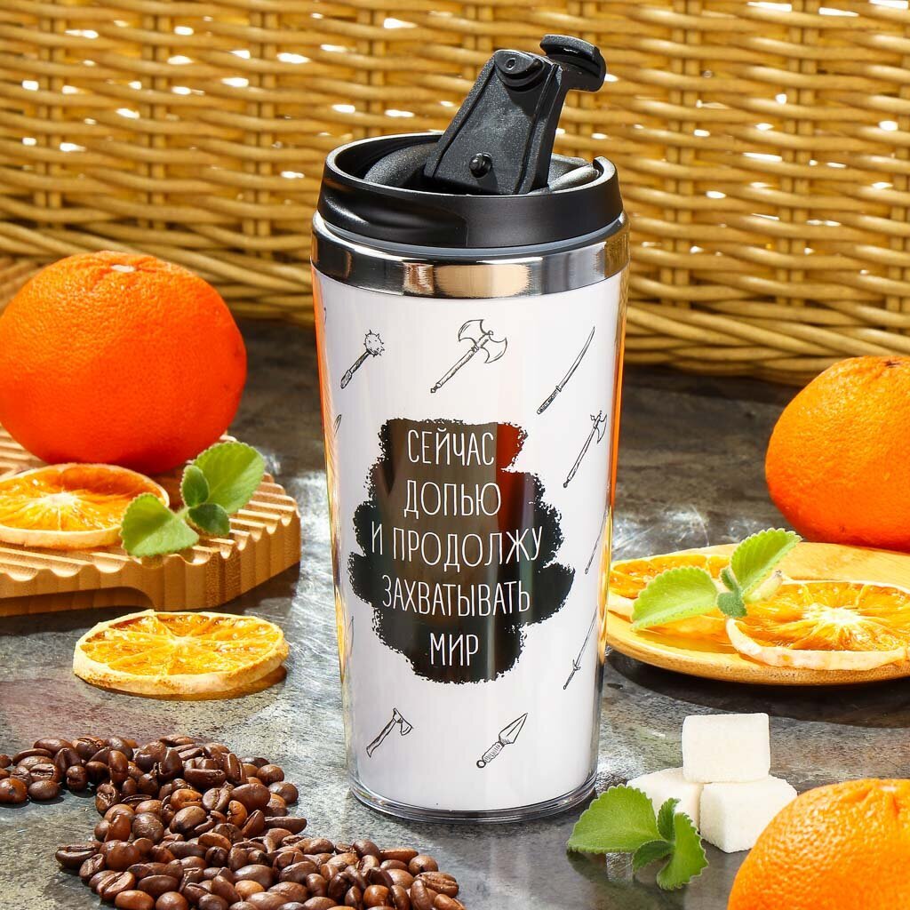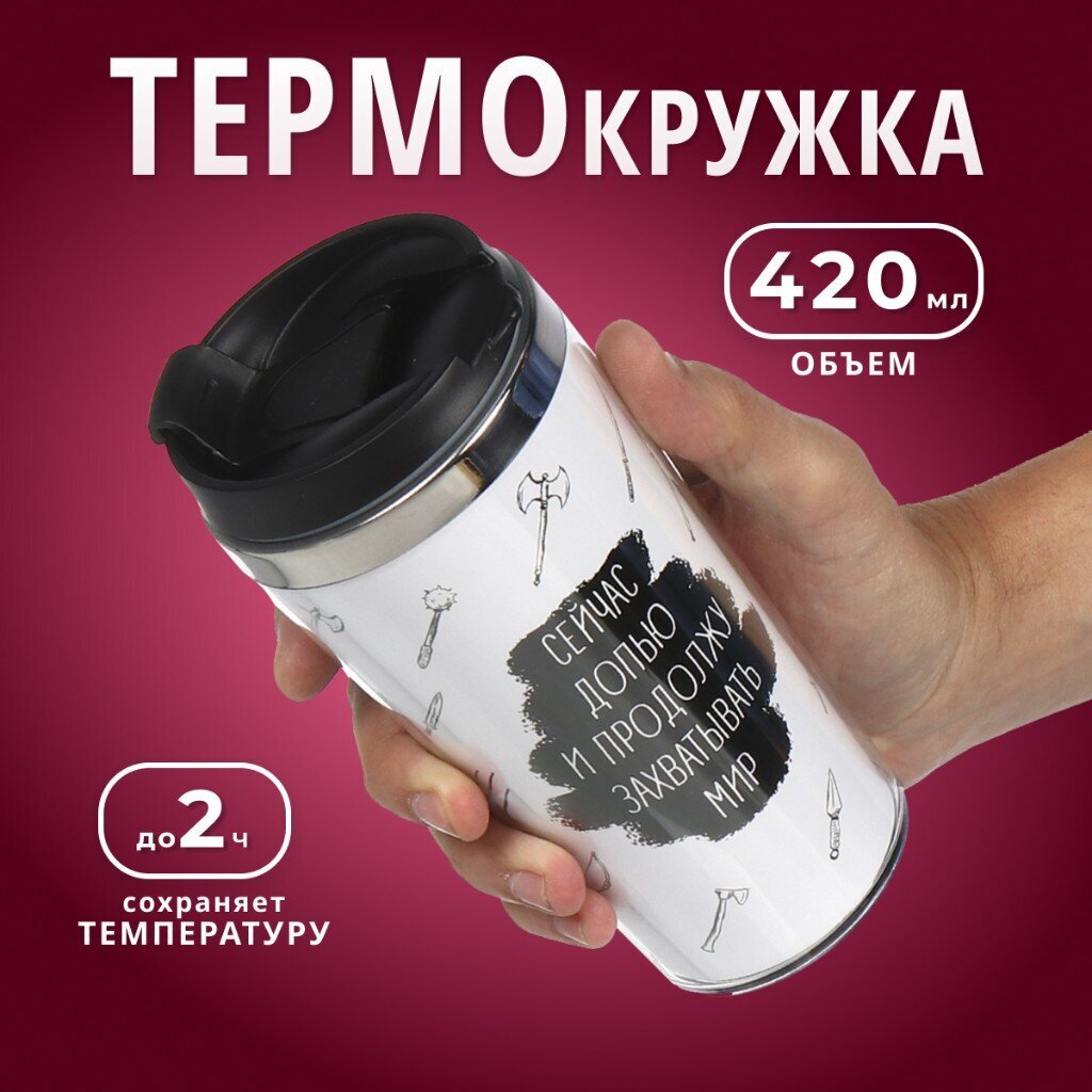Термокружка Daniks «Захватывать мир», 0.42 л — стильное решение для города и авто. Двойная сталь, удобство, тепло и холод до 2 часов. Идеально для подарка!