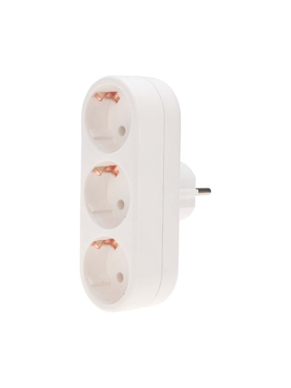 Электрический линейный тройник с заземлением позволяет одновременно подключить два бытовых электроприбора к одной розетке. Наличие заземляющих контактов повышает уровень электробезопасности. Подходит для использования в электрических сетях с напряжением 220 В. Корпус изготовлен из полипропилена белого цвета, имеет стойкость к механическим повреждениям и соответствует требованиям пожаробезопасности.