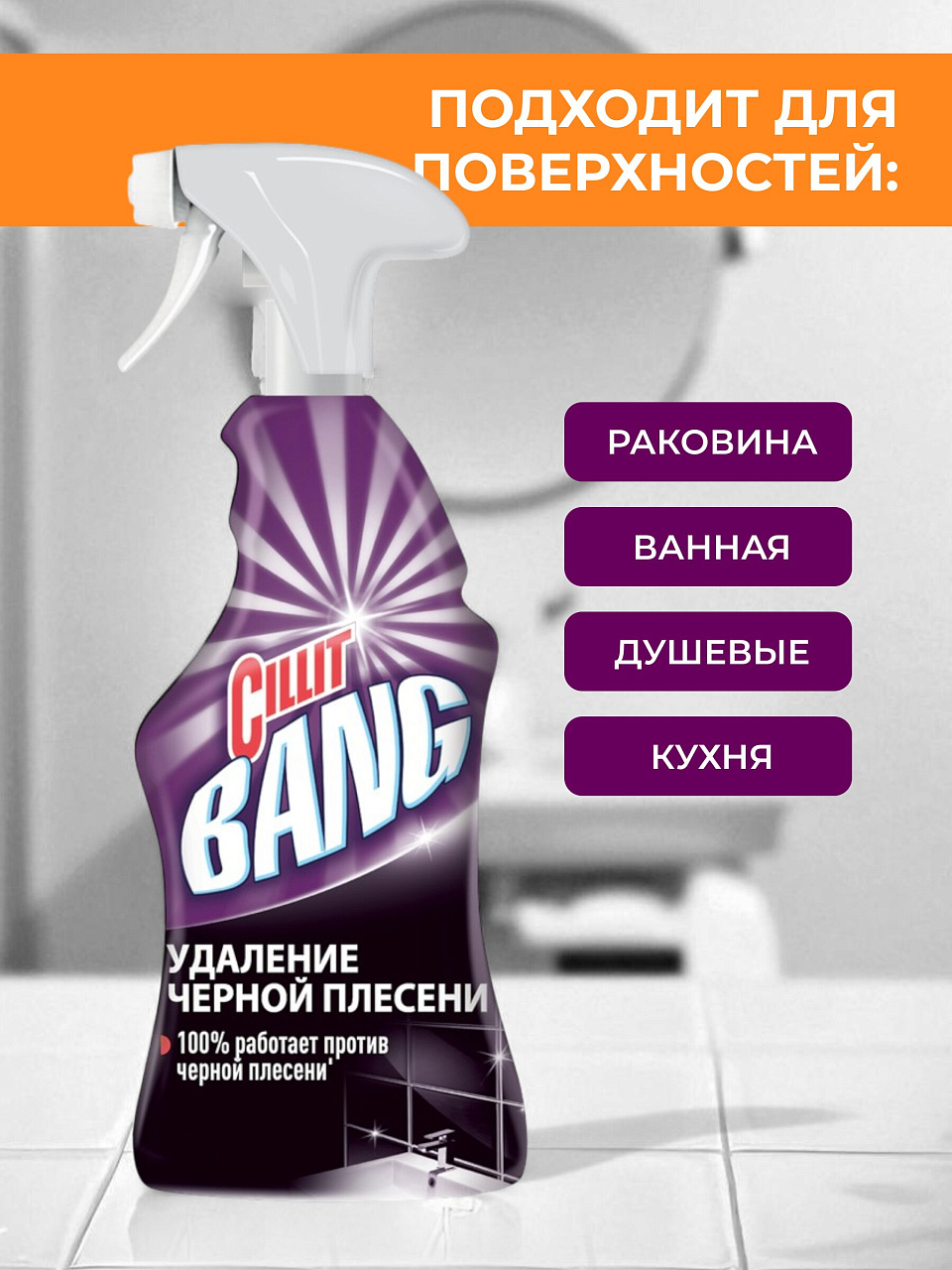 Мощное средство Cillit Bang эффективно работает на сырых поверхностях против плесени и грибка. Идеально подходит для удаления застарелых пятен, в том числе черного плесневелого налета и грибка, для различных материалов и поверхностей, таких как раковины, ванны, душевые кабины, рабочие поверхности на кухне. Легкое использование благодаря удобному распылителю.