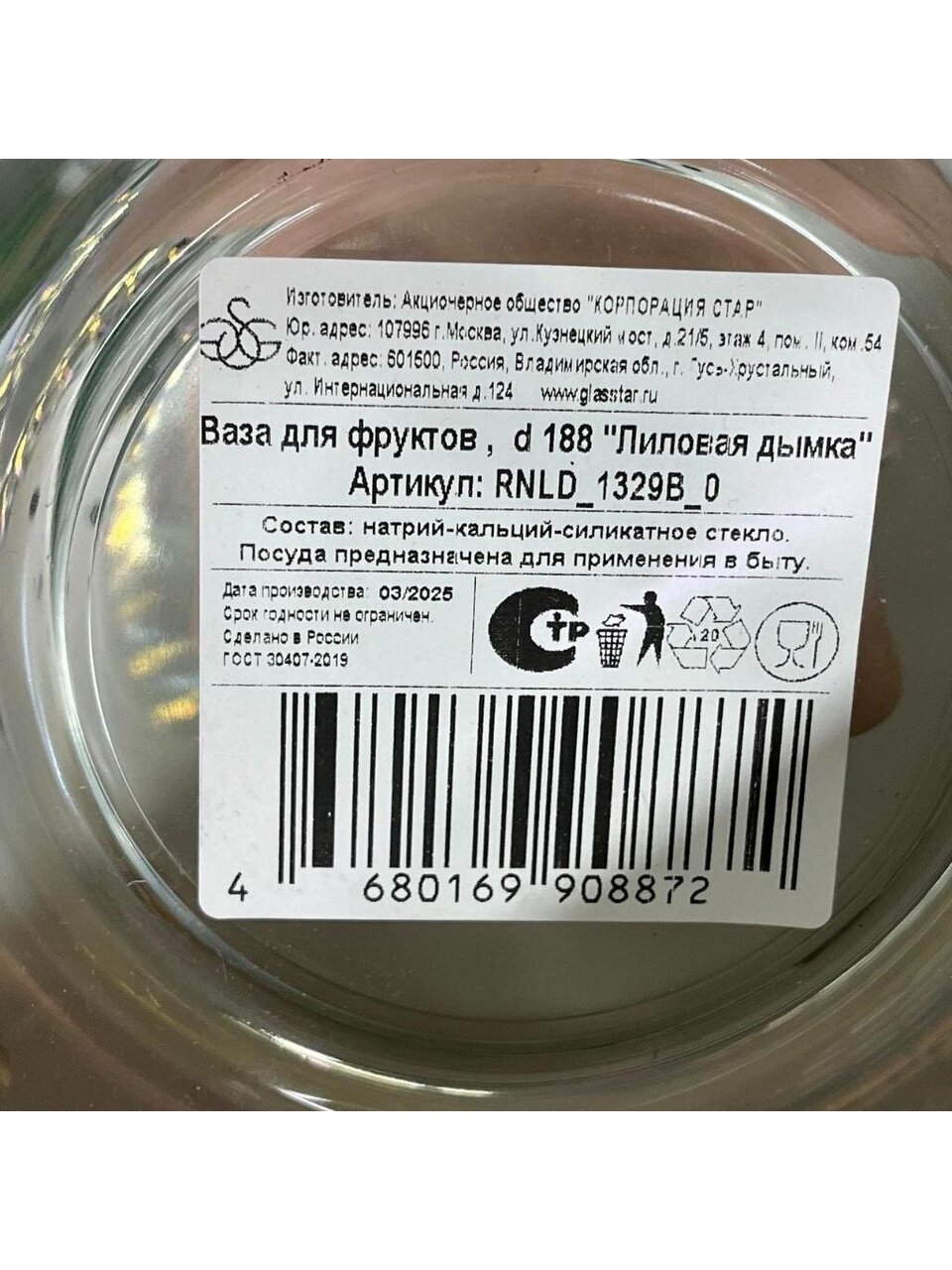 Вы можете приобрести «Ваза для фруктов, стекло, на ножке, 1300 мл, 19 см, Glasstar, Лиловая дымка, RNLD_1329B_0, лиловая дымка» и другие товары в нашем интернет-магазине в Коврове по низким ценам и с бесплатным самовывозом.