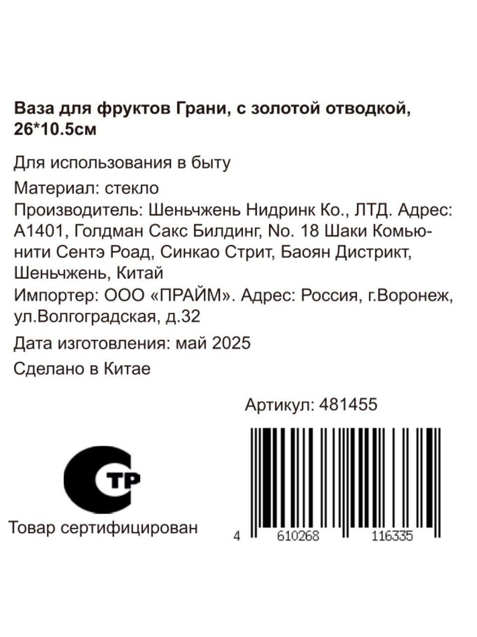 - Материал: стекло.