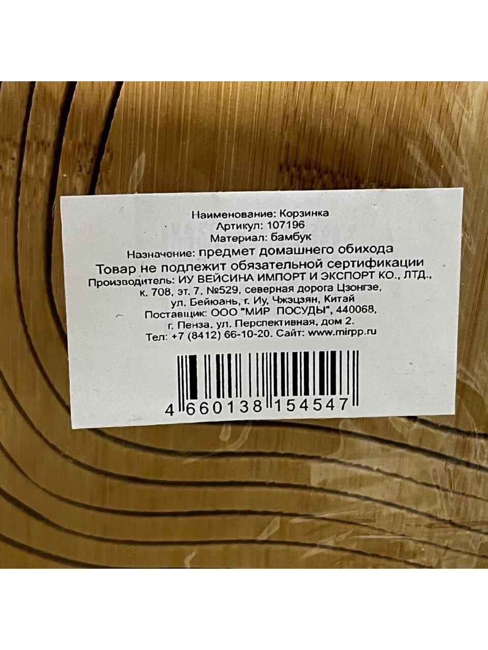 Эта корзина изготовлена из натурального бамбука, что делает ее не только экологически чистой, но и долговечной. Бамбук известен своей прочностью и устойчивостью к воздействию влаги, что гарантирует долгий срок службы изделия. Благодаря фигурной форме корзина выглядит оригинально и привлекательно, добавляя нотку изысканности в любой интерьер.