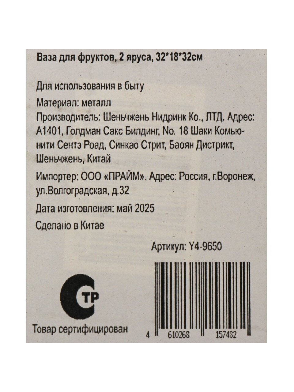 Вы можете приобрести «Ваза для фруктов, 2 яруса, металл, 32х18х32 см, Y4-9650» и другие товары в нашем интернет-магазине в Орле по низким ценам и с бесплатным самовывозом.