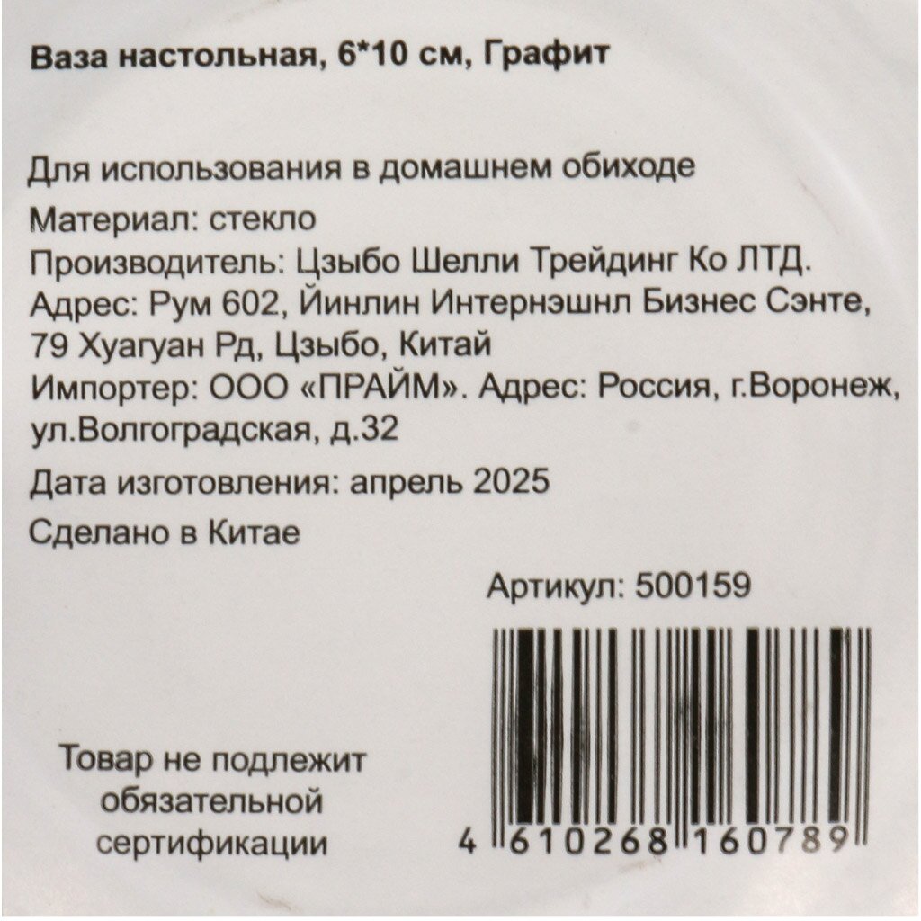 Ваза стекло, настольная, 6.4х9.7 см, Графит