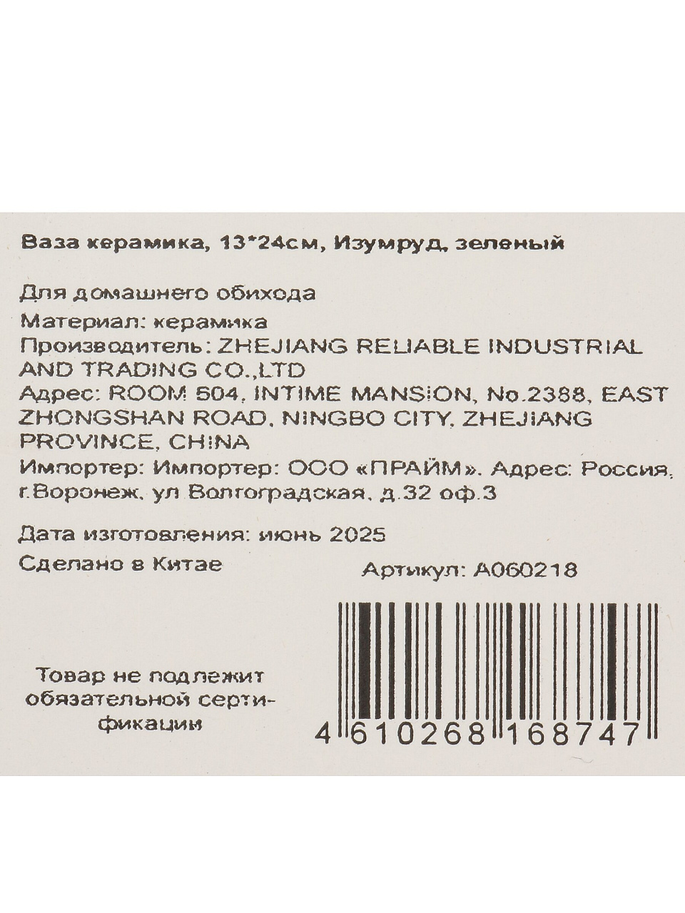 Вы можете приобрести «Ваза керамика, настольная, 24х13 см, Изумруд, A060218, зеленая» и другие товары в нашем интернет-магазине в Воронеже по низким ценам и с бесплатным самовывозом.