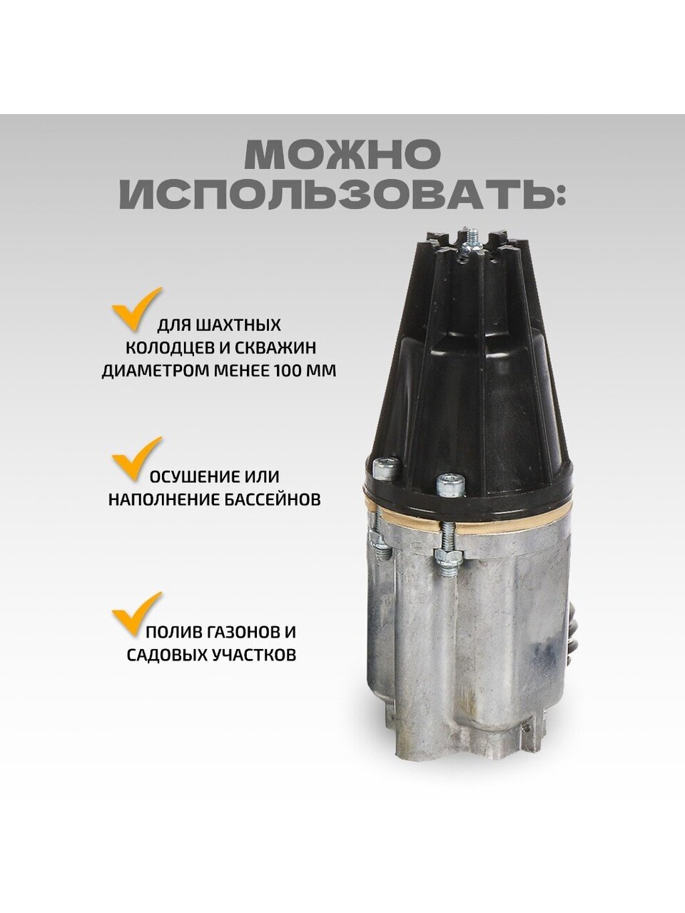 - Предназначен для подачи воды из шахтных колодцев и скважин с внутренним диаметром не менее 100 мм.