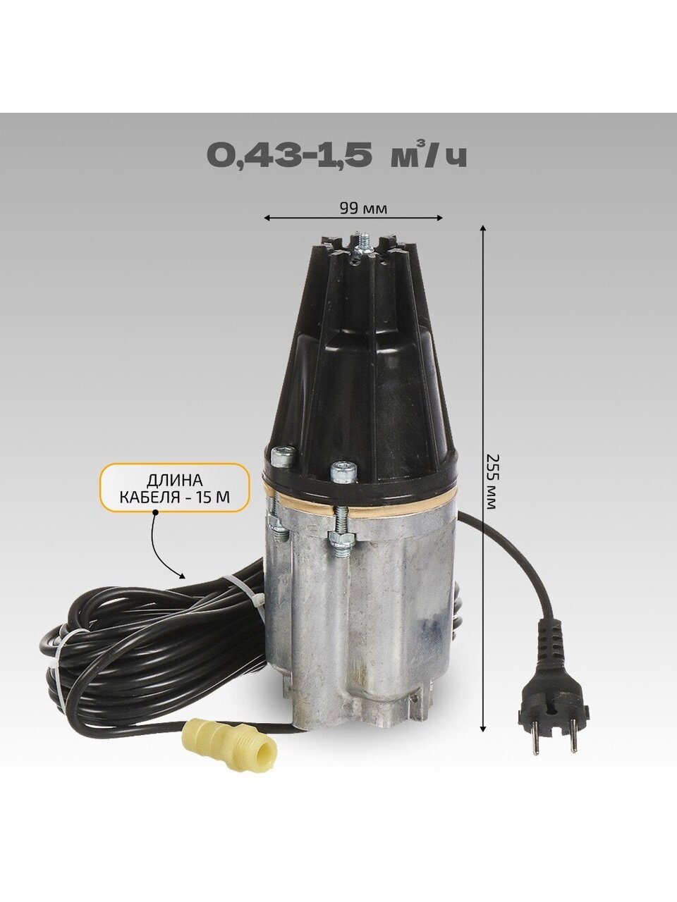 - Подача: 0.43-1.5 м³/ч.