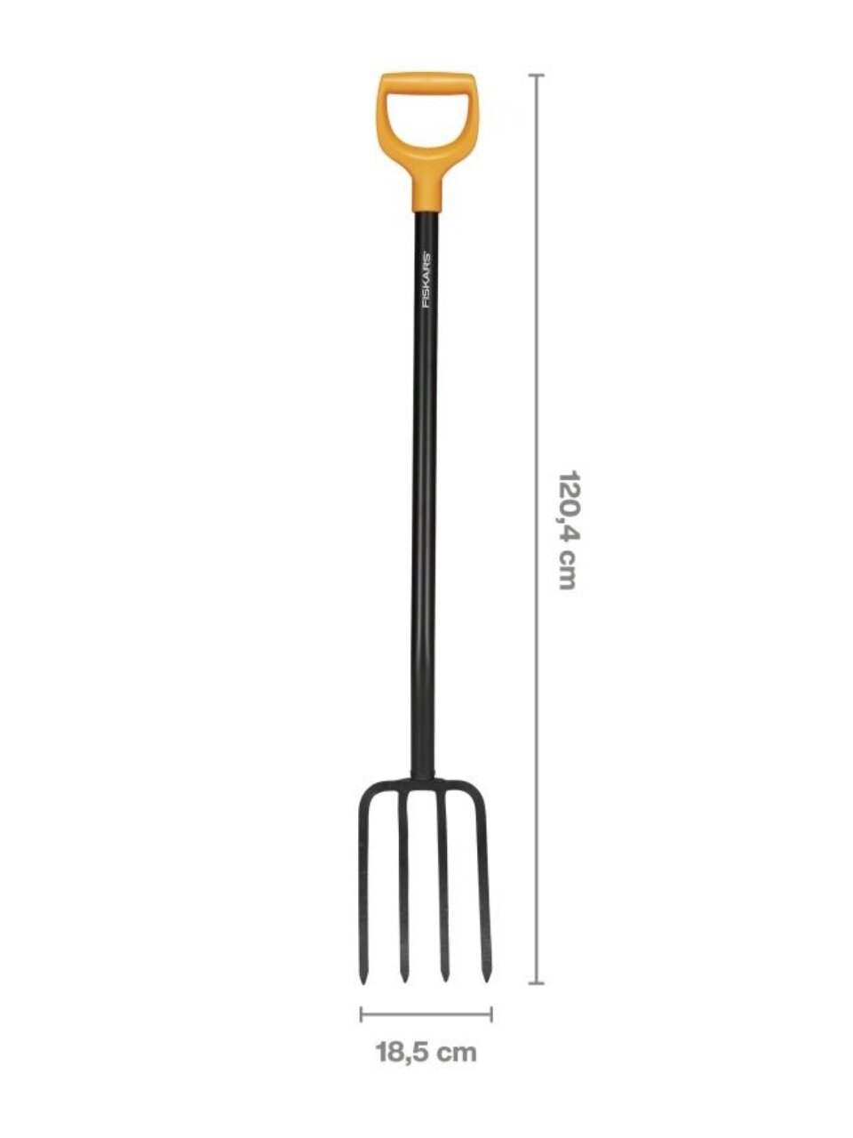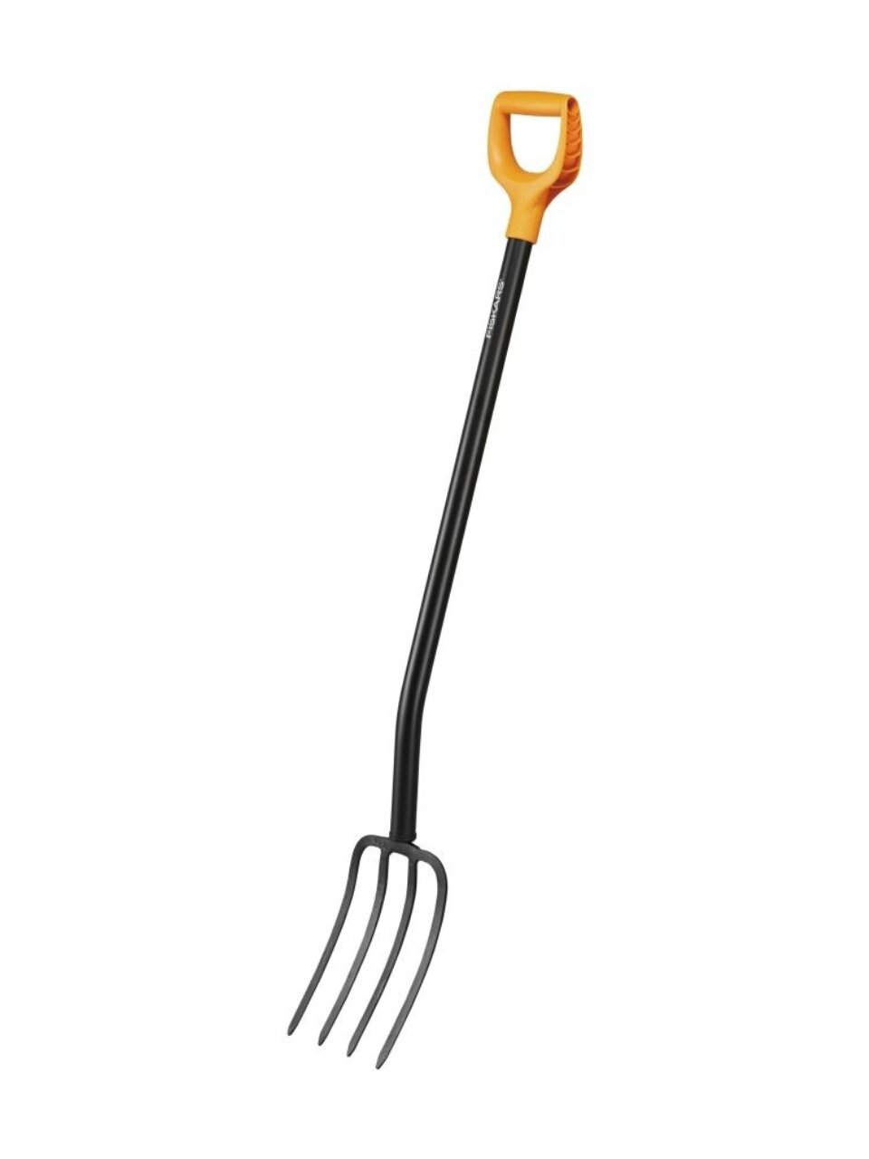 Вилы садово-огородные Solid Fiskars, артикул 1070673, — выбор опытных дачников и начинающих садоводов. Инструмент оснащён четырьмя прочными рогами, которые легко проникают в плотную почву, дерн и компост. Благодаря цельнометаллическому черенку из стали, вилы устойчивы к деформации и выдерживают интенсивную эксплуатацию на протяжении многих сезонов. Если вы ищете, какие вилы выбрать для дачи или что лучше для перекопки огорода, обратите внимание на эту модель: она сочетает прочность, долговечность и удобство.