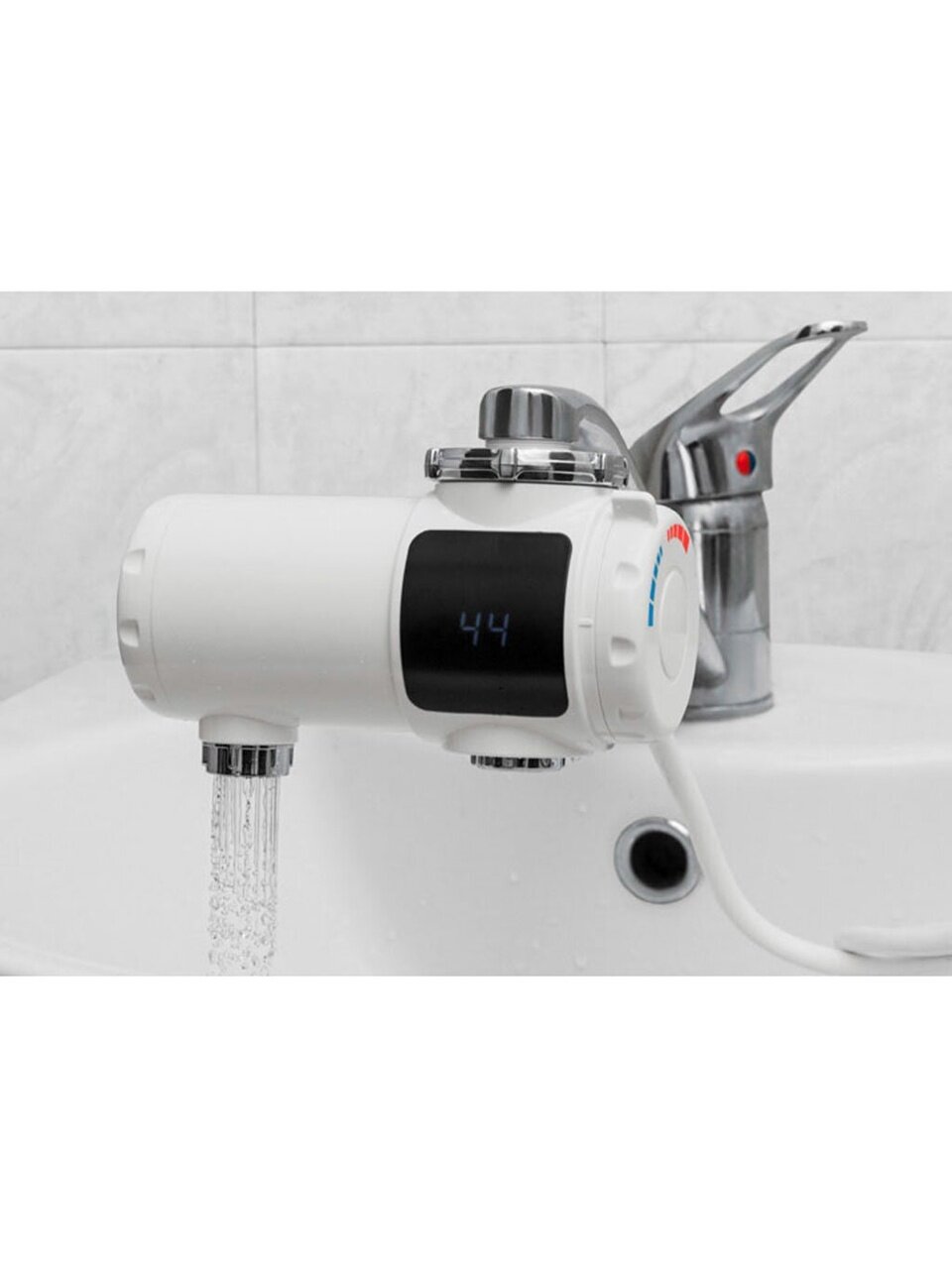 С такой моделью Вам не нужно осуществлять сложный монтаж водонагревателя. Устройство достаточно установить сразу на извлив смесителя. В комплекте предусмотрены различные типы насадок (переходных муфт) и ключ для их смены.