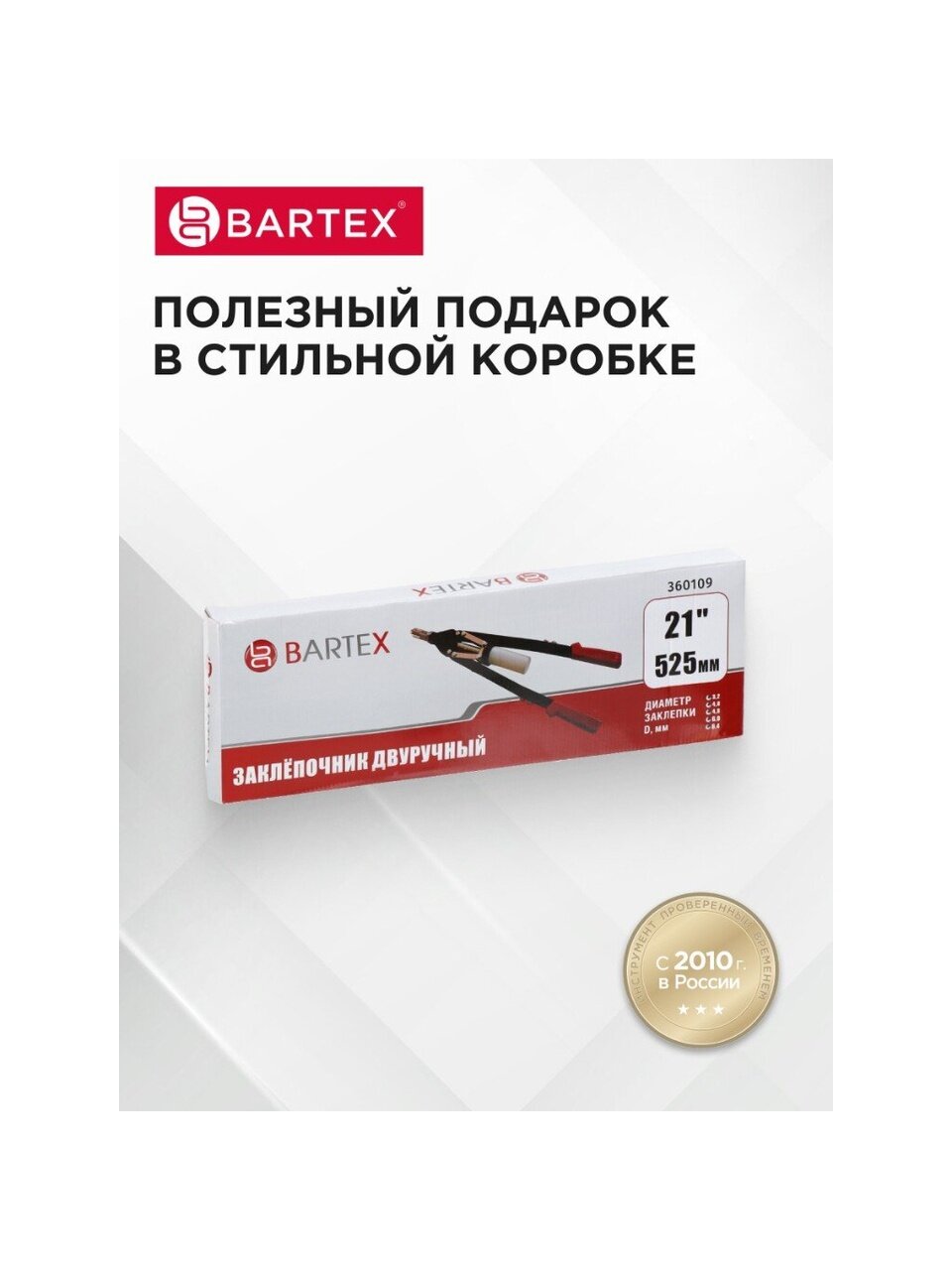 Ручной заклепочник Bartex – это отличная альтернатива для крепления металла в тех случаях, когда проведение сварочных работ невозможно или нецелесообразно. Вы сможете использовать этот инструмент практически в любых условиях: при повышенной влажности и запыленности, на высоте, когда нет электропитания. Эргономичная форма изделия и прорезиненные рукоятки обеспечивают надежный и удобный захват, что не позволит Вашим рукам устать даже при длительной нагрузке.