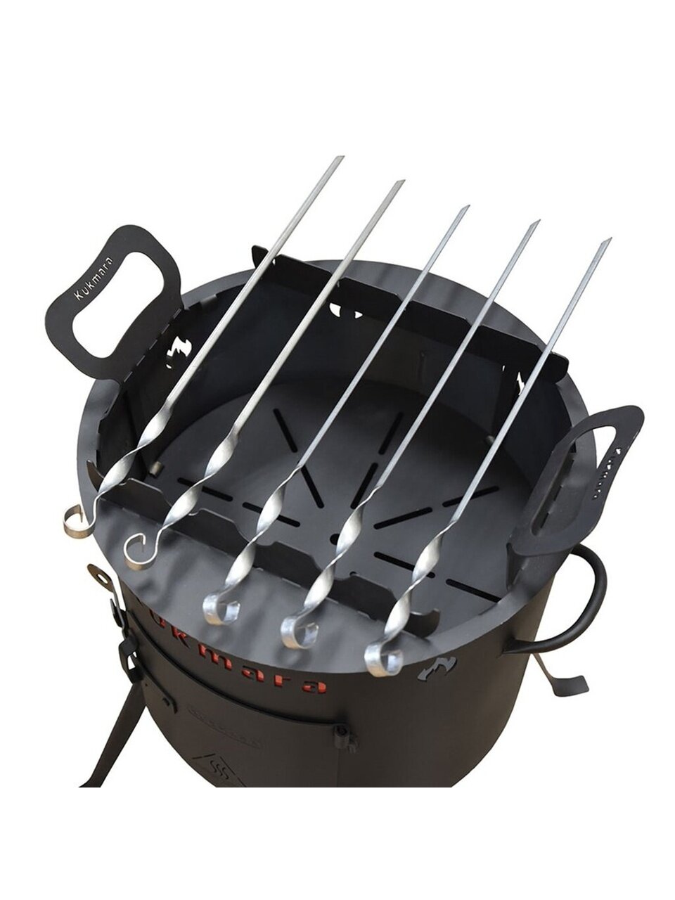 Подставка для шампуров на учаг для казана Kukmara - уникальная разработка специалистов АО “Кукморский завод Металлопосуды”. Благодаря подставке учаг можно использовать и в качестве мангала. Приспособление состоит из подставки для шампуров и дополнительного дна, которое устанавливается на верхний край корпуса учага.